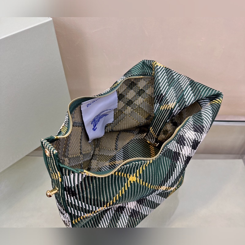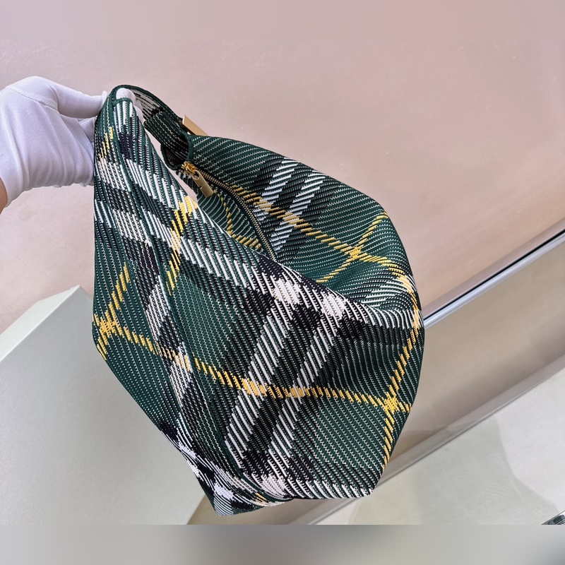 B가 부드럽고 탄력 있는 클립 백 이탈리아 니트 소재로 제작되었으며 버버리 체크 패턴이 장식되어 있습니다. 가벼운 질감에 내부 포켓이 없는 디자인입니다. 옷핀 모양의 걸이 고리에는 버버리 로고가 새겨져 있으며 곡선형 상단 핸들을 쉽게 고정할 수 있습니다. 지퍼 여밈 브러시드 메탈 디테일 옷핀 걸쇠에 새겨진 버버리 알파벳 로고 사이즈 28 16.5x 33.5cm