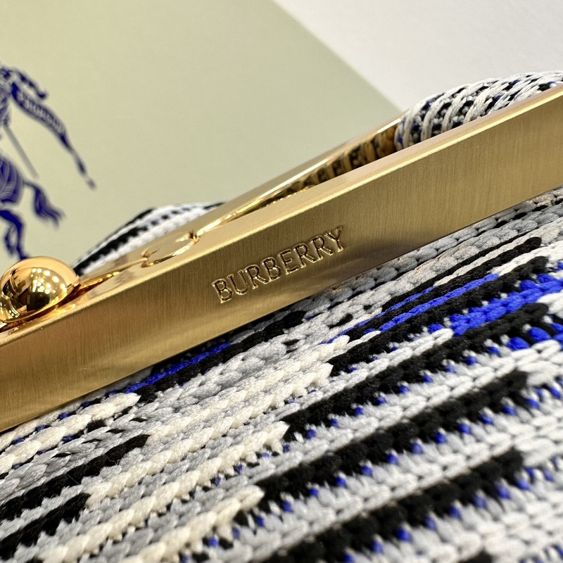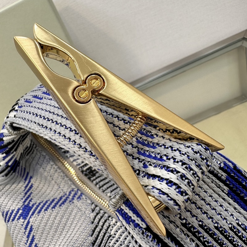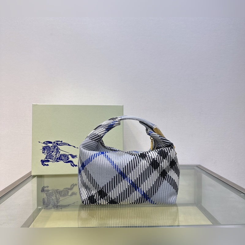 소형 B하우스 소프트 스탠딩 클립 백 이탈리아 니트 소재로 제작되었으며 버버리 체크 패턴이 장식되어 있습니다. 가벼운 질감에 내부 포켓이 없는 디자인입니다. 클립 모양의 걸이에는 버버리 로고가 새겨져 있으며 곡선형 상단 핸들을 쉽게 고정할 수 있습니다. 지퍼 여밈 브러시드 메탈 디테일 옷핀 걸이 부분에 새겨진 버버리 알파벳 로고 사이즈 21.5 x 10.5 x 23cm