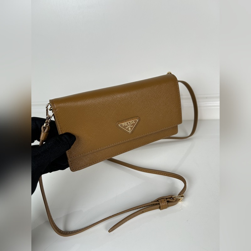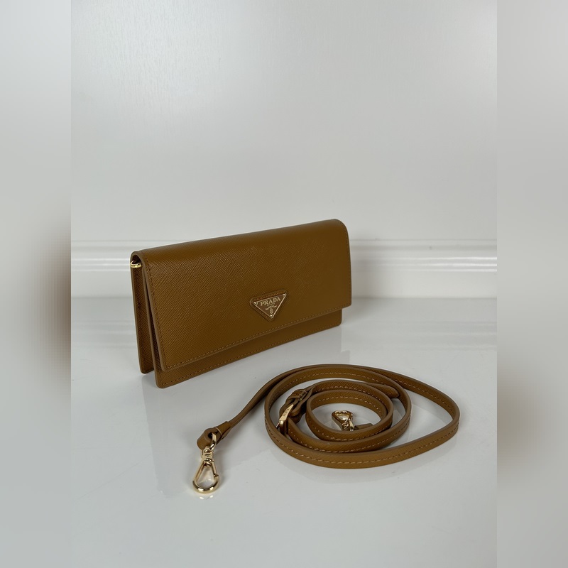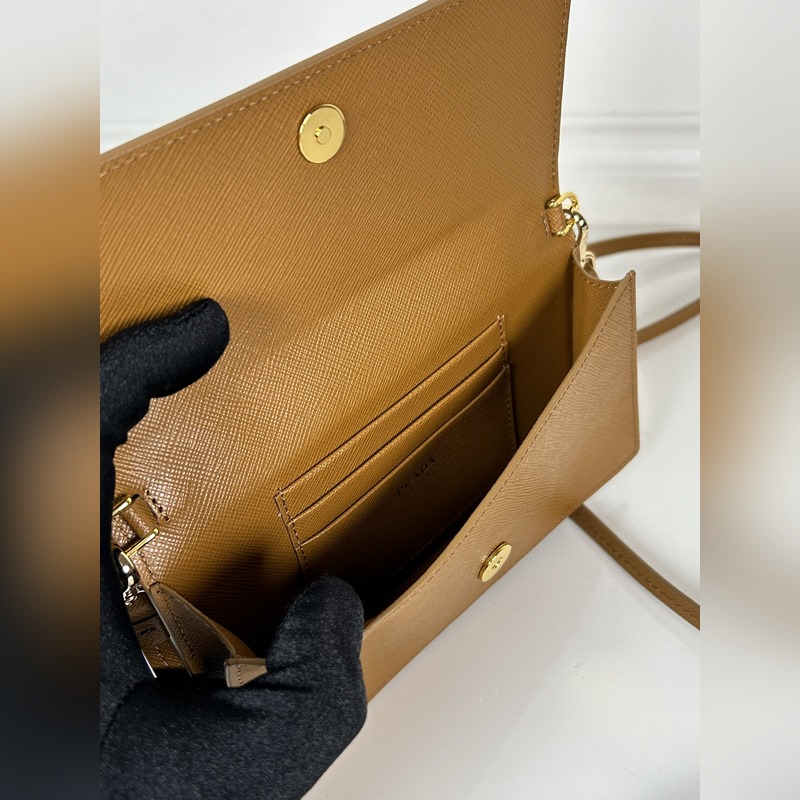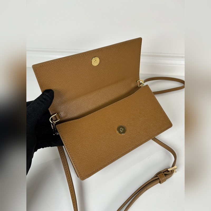 P가 여성용 다기능 미니 백팩 모델 번호 1MF059 플립 커버 카드 지갑과 분리 가능한 사피아노 가죽 숄더 스트랩이 특징입니다. 금속 삼각형 로고가 전면부를 장식하며 크기는 18x9.5x4cm입니다. 내부에는 세 개의 카드 슬롯이 있으며 버튼 잠금 장치로 개폐 가능합니다. 여름에는 미니 백팩으로 겨울에는 숄더 스트랩을 분리하면 작은 카드 지갑으로 변신할 수 있어 매우 실용적이며 소유할 가치가 있습니다.