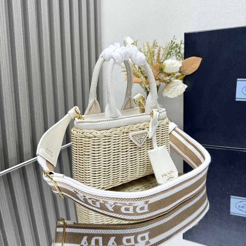 【프리미엄 원단】 신제품 첫 출시 2025 봄/여름 최신 모델 (소형) 1BG469 버드나무와 캔버스 토트백 이 버드나무 직조 토트백은 이중 손잡이와 면 캔버스 안감으로 제작되어 세련되고 매력적인 분위기를 자아냅니다. 가방 본체에는 탈착식 어깨 끈과 화장 거울이 달린 이름표가 장착되어 있습니다. 95cm 길이의 탈착식 로고 프린트 자수 스트랩과 탈착식 가죽 화장 거울 케이스 가죽 삼각형 로고가 브랜드의 특성을 강조합니다. 이 시리즈의 가방은 자연스러운 가벼운 소재를 특징으로 하며 여름 분위기를 물씬 풍깁니다. 사이즈: 길이 18cm × 높이 10cm × 너비 7cm