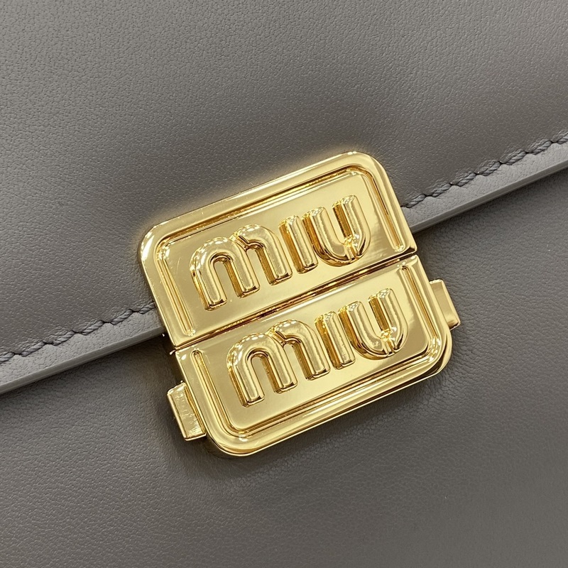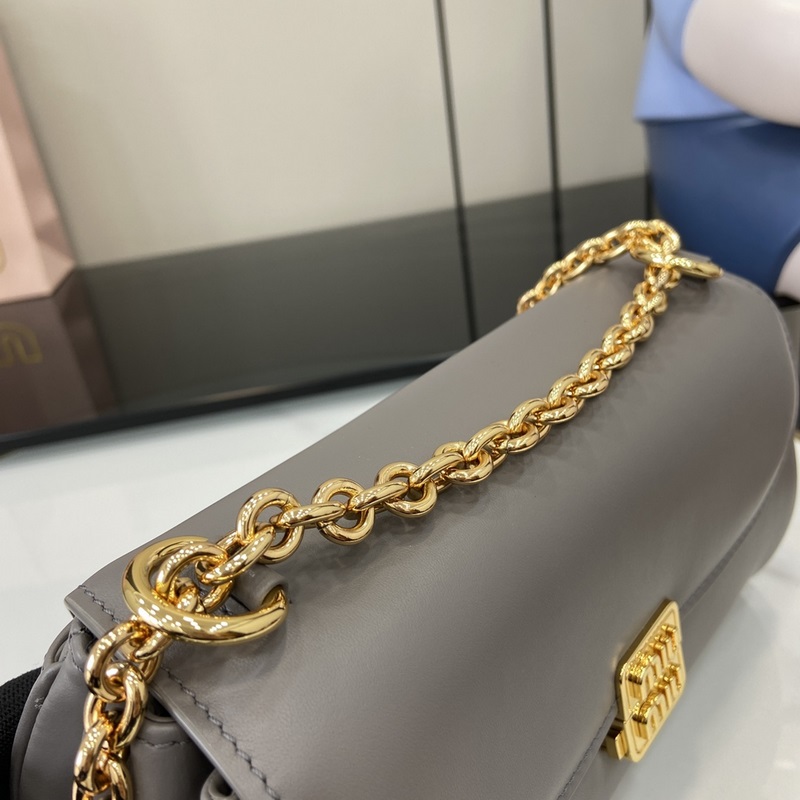 MiuM 신제품 프랑스 바게트 백. 이 단촘한 숄더 백은 클래식한 디자인을 계승했으며 가벼운 충전 가죽 디자인으로 독특한 매력을 자랑합니다. 최고급 소가죽 소재에 우아한 전면 플랩과 조절 가능한 금속 숄더 스트랩이 조화를 이룹니다. 다양한 스타일링이 가능하며 세련된 우아함과 편안한 캐주얼함을 동시에 갖추어 일상적인 휴일이나 출퇴근 시에도 완벽하게 어울립니다! 모델 번호: 5BD266. 크기: 24x13.5x9cm. 색상: 회색 전체 가죽/원본 가죽. 이탈리아 디자인