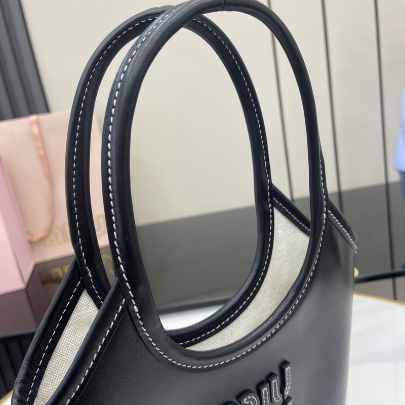 【신제품】 M 브랜드 신제품 미니 토트백 새로운 사이즈로 작고 귀여우며 다양한 스타일에 잘 어울립니다. 세련되고 독특한 디자인에 디테일이 정교하고 세련되어 클래식한 부조 로고가 독특한 분위기와 차별화된 인상을 선사합니다. Miu의 복고풍을 이어가며 자유롭고 편안한 스타일을 완성했습니다. 탈착 및 조절 가능한 가죽 롱 스트랩이 포함되어 있으며 어깨에 메거나 손에 들고 크로스백으로 사용 가능해 실용성이 우수합니다. 실크 소재의 안감과 포켓이 내장되어 있습니다. 모델 번호: 5BA281. 크기: 20cm x 24cm. 색상: 블랙/원본 가죽. 이탈리아 디자인