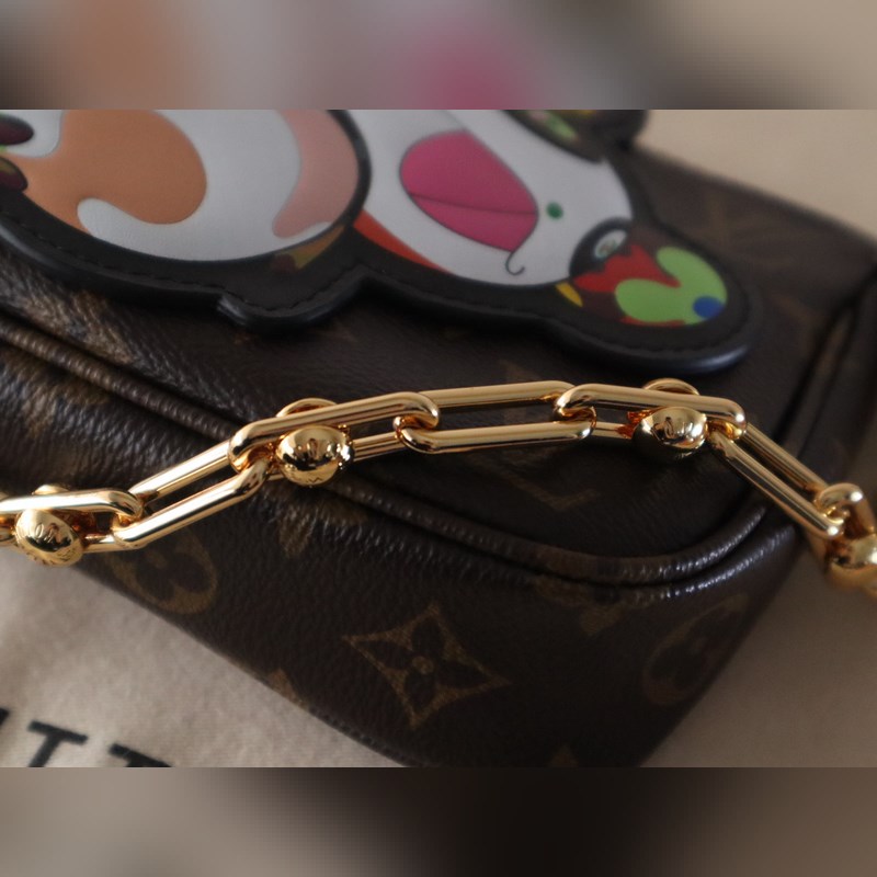 최고급 원단 M13440 이 제품인 Pochette Accessoires 핸드백은 Monogram 코팅 캔버스 소재를 사용해 루이 비통 x 무라카미 타쿠미 리메이크 컬렉션에 활기찬 개성을 더했습니다. 예술가의 손길로 재해석된 화려한 팬더 디자인이 클래식한 실루엣을 새롭게 해석했으며 지퍼 디자인으로 일상 소품을 안전하게 수납할 수 있습니다. 소가죽 숄더 스트랩과 화려한 체인 스트랩은 모두 분리 가능해 다양한 착용 방법을 제공합니다. 13 x 4 x 22 cm (높이 x 너비 x 길이) dyw