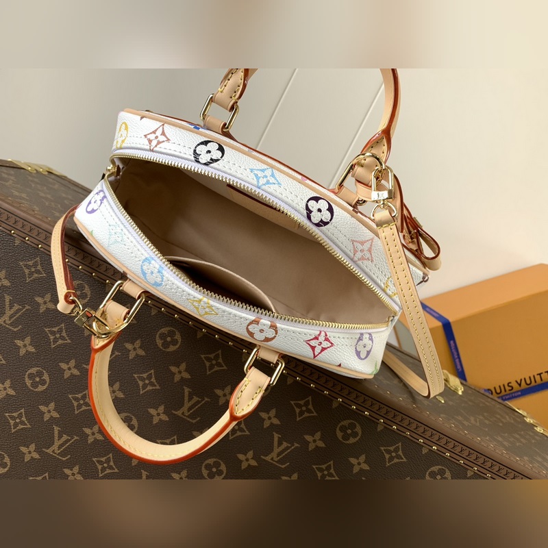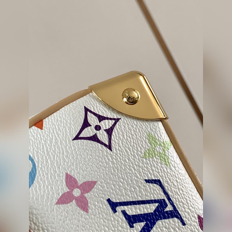 최고급 원단 변환 칩 M13084 이 핸드백은 루이 비통과 무라카미 타쿠미의 재발행 시리즈에서 탄생한 제품으로 예술가의 대표적 무지개 색상으로 전체 Monogram 패턴을 표현했습니다. 수평적인 구조와 유려한 선이 특징이며 상단 손잡이 장식 못이 달린 측면 스트랩 분리 및 조절 가능한 어깨 스트랩 LV x TM 키링이 소가죽 디테일로 마감되어 브랜드의 전통적인 여행 가방 디자인을 반영했습니다. 14 x 10 x 27 cm (높이 x 너비 x 길이) 모노그램 코팅 캔버스 소가죽 장식 가장자리 직물 내장 금속 부품 지퍼 개폐식 내부 포켓 스마트폰 열쇠 이어폰 및 Zippy 지갑을 수납 가능 어깨 끈: 분리 가능 조절 불가 가방 끈 길이: 44.0 cm 손잡이: 양손잡이