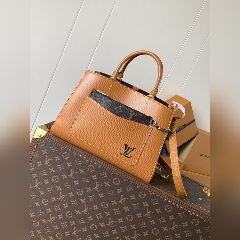 최고급 원단 변환 칩 1층 소가죽 M59953 캐러멜 브라운 M20520 화이트 M59950 블루 M59954 블랙 Marelle Tote 중형 핸드백은 Epi 그레인 가죽으로 유려한 선을 강조하며 분리 가능한 Monogram 포켓 구멍 뚫린 LV 로고 Toron 손잡이 등 상징적인 요소를 이어받아 도시 생활에 유연한 선택을 제공합니다. 분리 가능한 스트랩으로 손을 자유롭게 사용할 수 있으며 편안하게 크로스백으로 착용 가능합니다. 크기: 30.0 x 21.0 x 13.0 cm (길이 x 높이 x 너비)