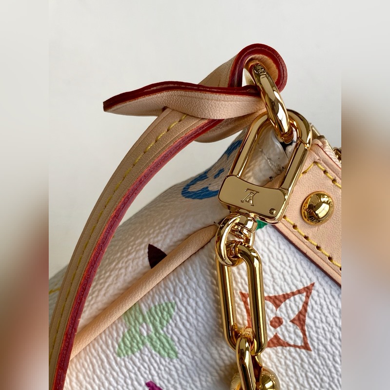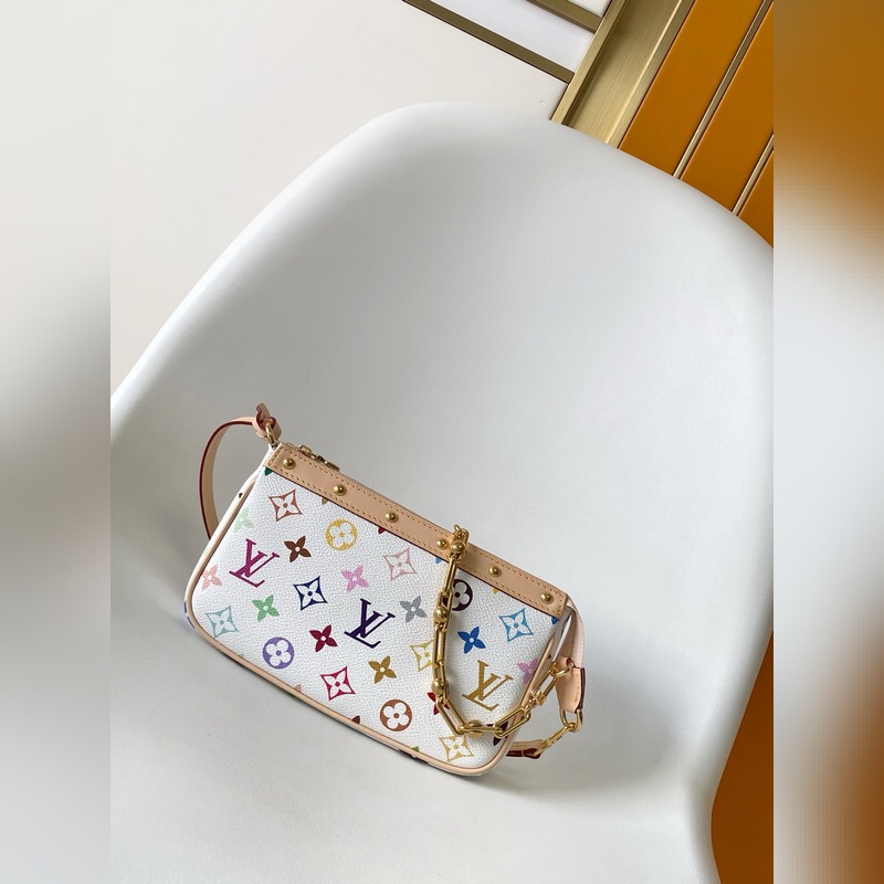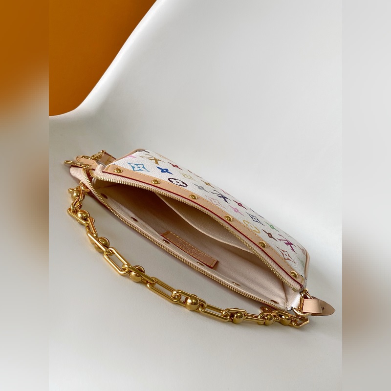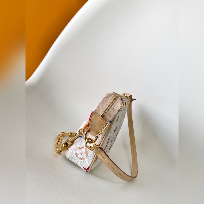 최고급 원단 163c01 동일 디자인 동적 칩 M13404 화이트 컬러 M13663 블랙 컬러 이 제품인 Pochette Accessoires 핸드백은 Monogram 코팅 캔버스 소재를 사용해 루이 비통 x 무라카미 타쿠미 리메이크 시리즈에 활기찬 개성을 더했습니다. 예술가의 손길로 재해석된 화려한 팬더 디자인이 클래식한 실루엣을 새롭게 해석했으며 지퍼 디자인으로 일상 소품을 안전하게 수납할 수 있습니다. 소가죽 숄더 스트랩과 화려한 체인 스트랩은 모두 분리 가능해 다양한 착용 방법을 제공합니다. 13 x 4 x 22 cm (높이 x 너비 x 길이) 모노그램 코팅 캔버스 소가죽 장식 직물 내장 금속 부품 지퍼 개폐식 어깨 끈: 분리 가능 조절 불가 가방 끈 길이: 21.0 cm 체인: 분리 가능 체인 반 길이: 20.0 cm 손잡이: 단일 손잡이 분리 가능