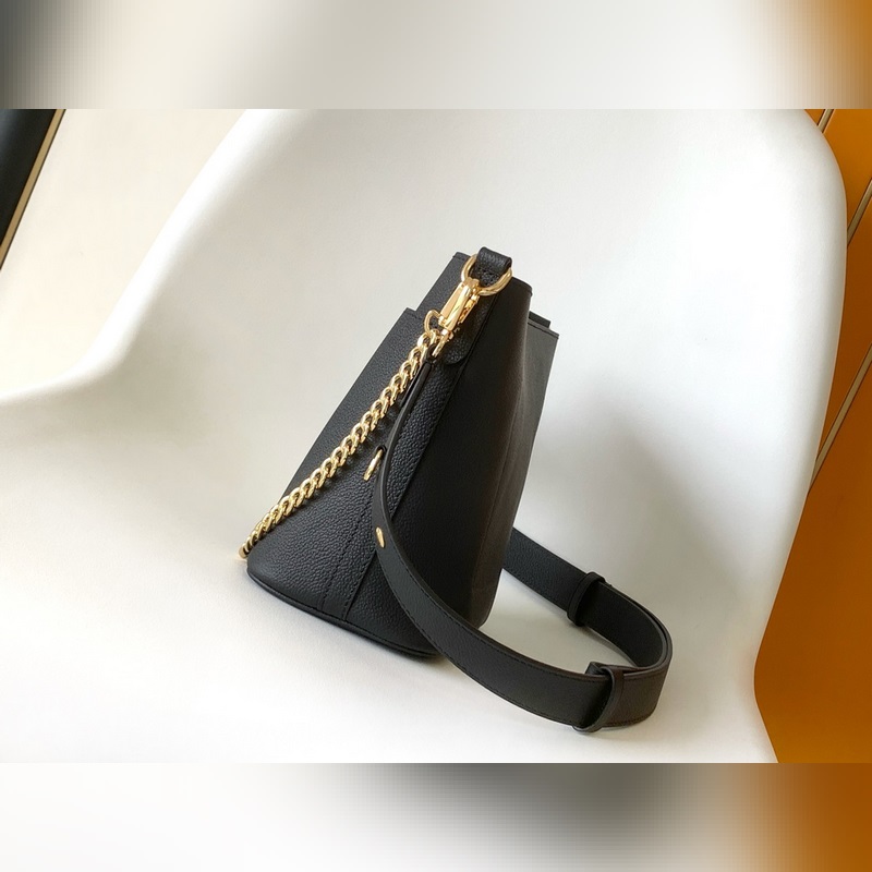 변환 칩 최고급 원단 M24638 화이트 M24006 블랙 M24165 캐러멜 Lock and Walk 버킷 백은 가벼우면서도 편안한 그레인 가죽으로 제작되었습니다. 프렌치 스타일의 우아함을 자연스럽게 연출합니다. LV 트위스트 잠금장치로 전면의 대형 수납 공간을 편리하게 열고 닫을 수 있으며 분리 가능한 어깨 끈과 체인 손잡이로 다양한 착용 방법을 제공합니다. 20.0 x 20.5 x 12.0 cm (길이 x 높이 x 너비) 립드 가죽 립면 소가죽 장식 미세 섬유 내장 금속 부품 에나멜 LV 회전 잠금 장치 잠금식 외부 주머니 내부 포켓 어깨 끈: 분리 가능 조절 가능 가방 끈 반 길이: 33.0 cm 가방 끈 반 길이 조절 가능: 52.0 cm 체인: 분리 가능 체인 반 길이: 27.0 cm