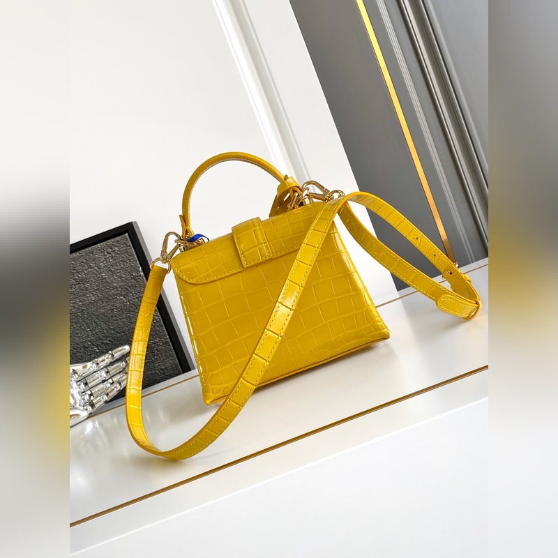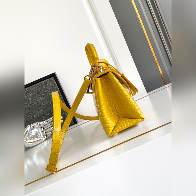 【원산지 소재】 M84713 노란색 (동적 칩 버전) 가죽 소재는 이탈리아 A급 가죽으로 품질 금속 부품 원단 수작업 오일 에지 A급 제품입니다. 크기: 19x15x9cm