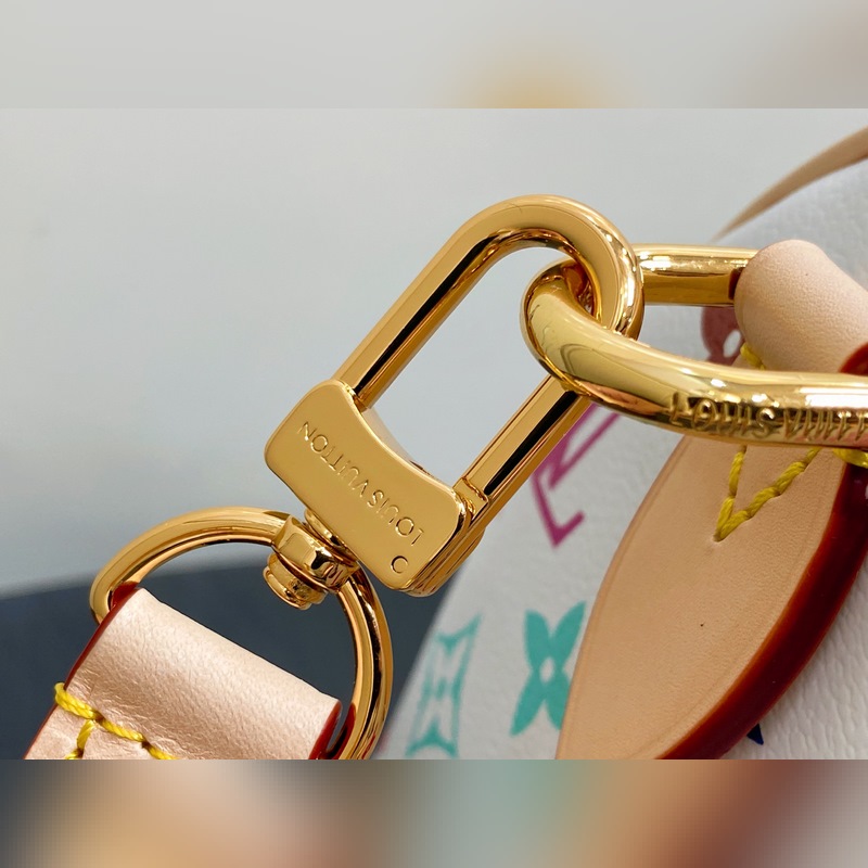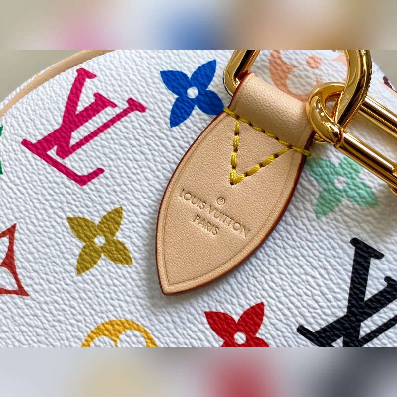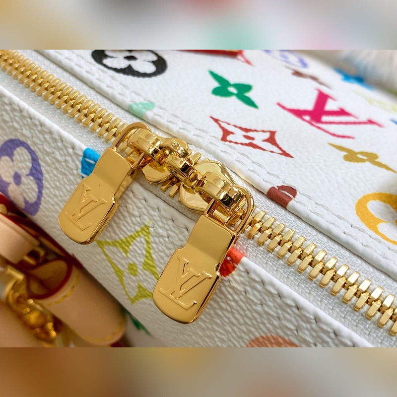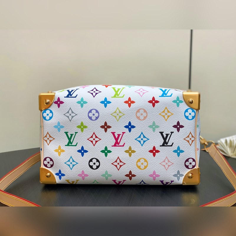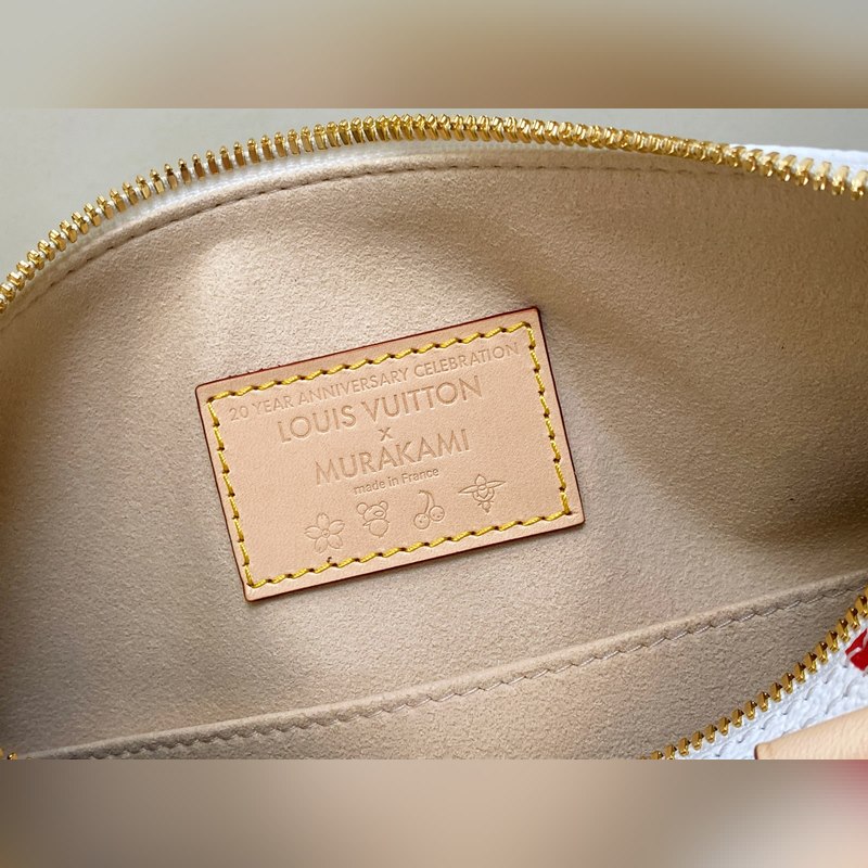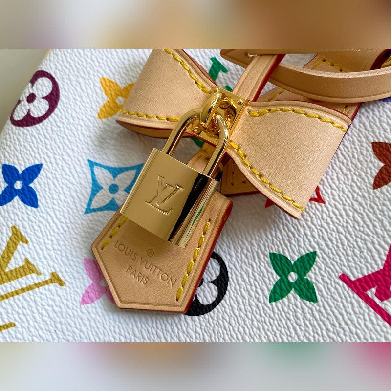 【올해 신제품】 M13085 화이트 컬러 스피디 베개 가방 이 스피디 밴드올리에르 25 핸드백은 클래식 모노그램 패턴에 일본 예술가 무라카미 타쿠미의 밝고 화려한 색조가 더해졌으며 나비 모양 키링과 함께 루이 비통 x 무라카미 타쿠미 협업 시리즈의 생동감 넘치는 스타일을 강조합니다. 소가죽으로 제작된 Toron 손잡이와 분리 및 조절 가능한 어깨 끈 눈길을 끄는 잠금 장치와 가방 모서리는 브랜드의 여행 가방 요소를 반영했습니다. 19 x 15 x 25 cm.