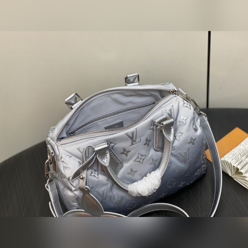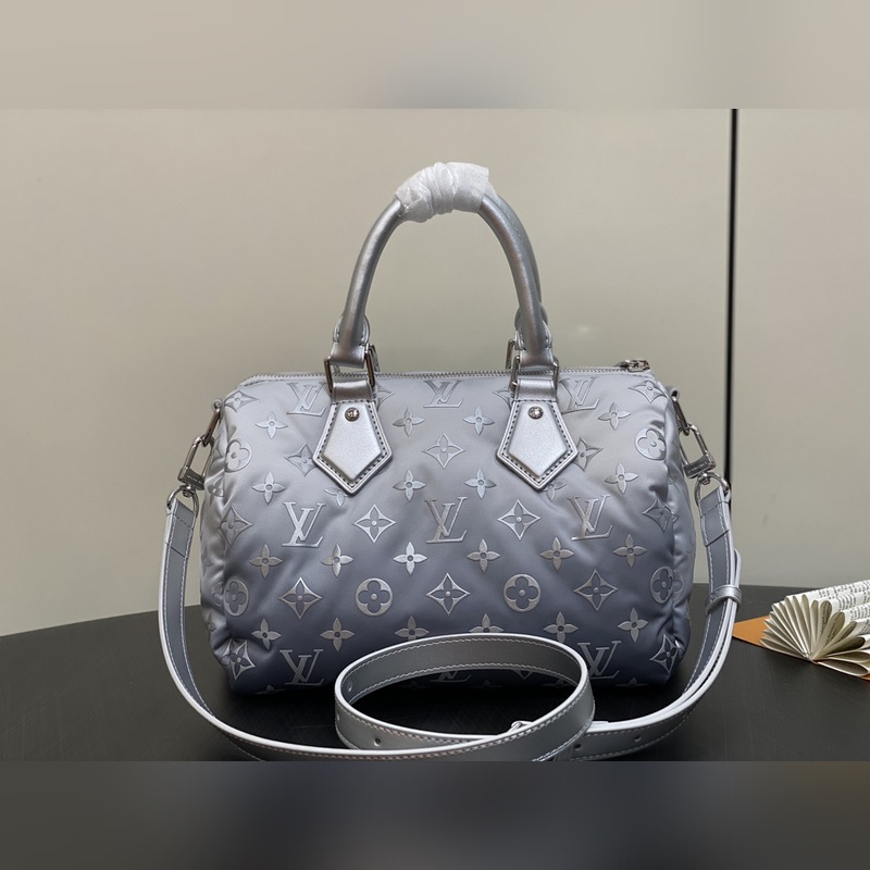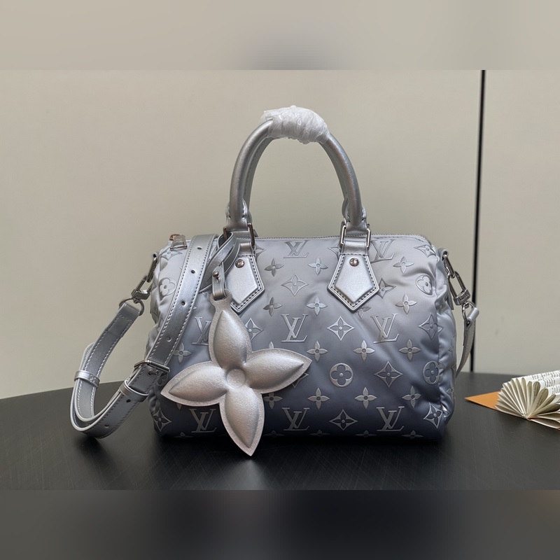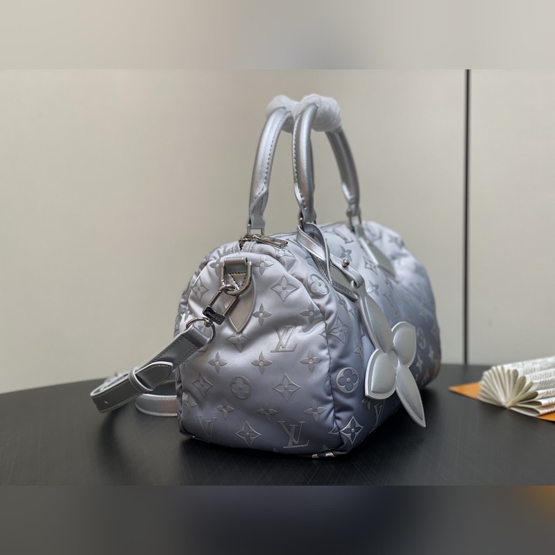 【올해 신제품】 M11848 실버 다운 베개 케이스 스피디 시리즈 스피디 반도리에 25 핸드백 이 스피디 반도리에 25 핸드백은 LVSnow 시리즈에서 탄생한 제품으로 새로운 모노그램 니트 소재가 독특한 그라데이션 효과를 연출하며 금속 장식과 꽃 모티프로 고급스러운 분위기를 완성했습니다. 컴팩트한 디자인으로 스마트폰 지갑 열쇠 등 일상 필수품을 편리하게 수납할 수 있으며 분리 및 조절 가능한 스트랩으로 다양한 착용 방법을 제공합니다. 크기: 25 x 19 x 15cm (길이 x 높이 x 너비)