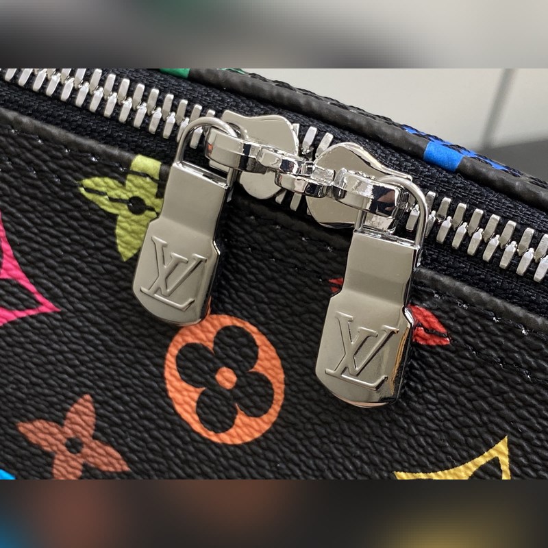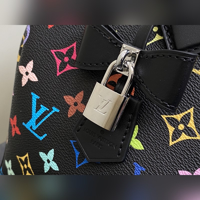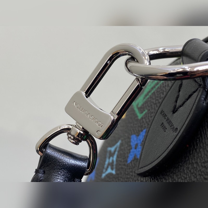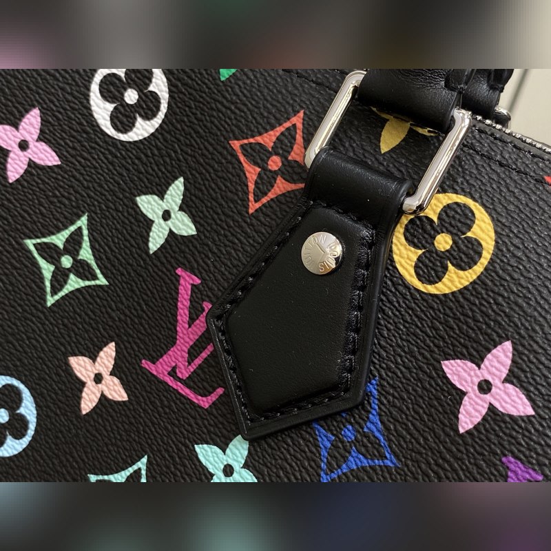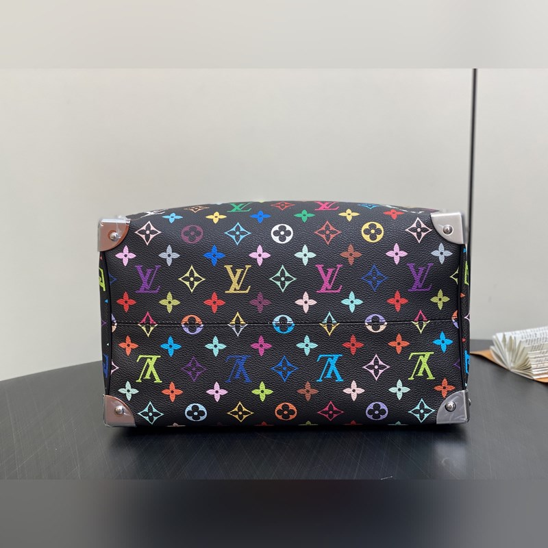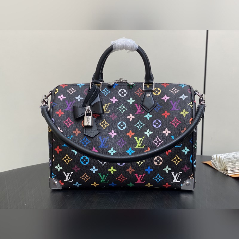 【올해 신제품】 M13257 블랙 컬러 베개 모양 가방 스피디 이 스피디 소프트 30 핸드백은 부드러운 코팅된 캔버스 소재로 제작되었으며 화려한 무지개 색상으로 전체에 모노그램 패턴을 그려내어 루이 비통 x 무라카미 타쿠미 리메이크 시리즈의 역동적인 스타일을 강조합니다. 소가죽으로 제작된 Toron 손잡이와 분리 가능한 어깨 끈 금속 모서리 장식이 클래식한 여행 가방 요소를 재현했으며 나비 모양 키 케이스와 자물쇠가 브랜드의 독특한 터치를 더했습니다. 21 x 17 x 30 cm(높이 x 너비 x 길이)