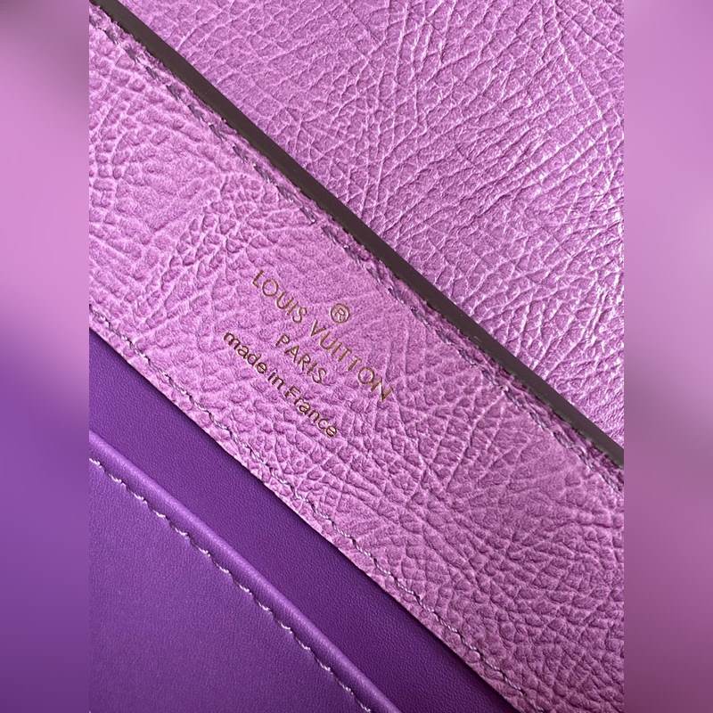 【원료】 M24713 보라색 (동적 칩 버전) 가죽은 이탈리아 A급 가죽으로 품질 금속 부품 원단 수공예 오일 에지 A급 제품입니다. 크기: 21x14x8CM