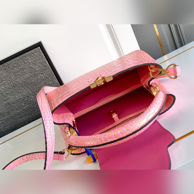 【원료】 M92173 핑크색 (동적 칩 버전) 가죽 소재는 이탈리아 A급 가죽으로 품질 금속 부품 원단 수공예 오일 에지 처리 A급 제품입니다. 크기: 27x18x9cm