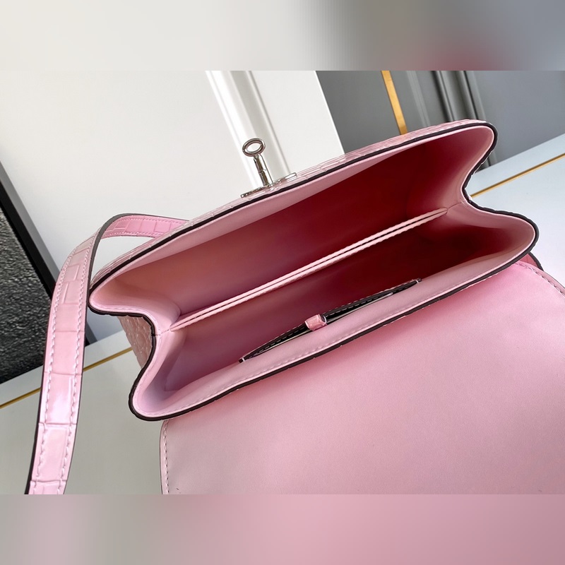【원산지 소재】 M84714 핑크색 (동적 칩 버전) 가죽은 이탈리아 A급 가죽으로 품질 금속 부품 원단 수작업 오일 에지 처리 A급 제품입니다. 크기: 27x18x9cm