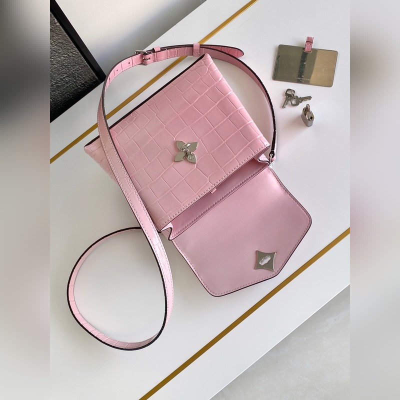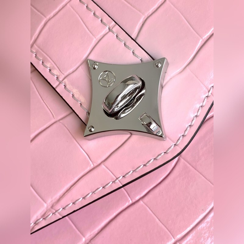【원료】 M84713 핑크색 (동적 칩 버전) 가죽은 이탈리아 A급 가죽으로 품질 금속 부품 원단 수작업 오일 에지 A급 제품입니다. 크기: 19x15x9cm