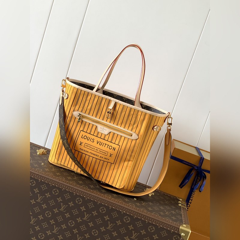 최고급 원단 변환 칩 M12257 로즈 레드 M11947 노란색 M12096 대홍색 루이 비통의 클래식 디자인 중 하나인 Neverfull Bandouli?re Inside Out 중형 핸드백은 이번에는 Monogram 캔버스와 스트라이프 직물을 소재로 사용해 양면 디자인으로 트렌디한 감각을 강조했습니다. 분리 가능한 숄더 스트랩으로 크로스백으로 사용 가능하며 측면의 걸쇠로 Hobo 핸드백으로 변형 가능합니다. 28 x 14 x 31 cm (높이 x 너비 x 길이) Monogram 코팅 캔버스 / 직물 코팅 캔버스와 직물 소가죽 장식 금속 부품 고리 잠금 장치 인쇄 지퍼 내장 포켓 측면 장식 띠 측면 걸쇠 어깨 끈: 분리 가능 조절 불가 가방 끈 길이: 42.0 cm 손잡이: 양손잡이 이 제품은 프랑스 스페인 이탈리아 및 미국에서 생산되었습니다.
