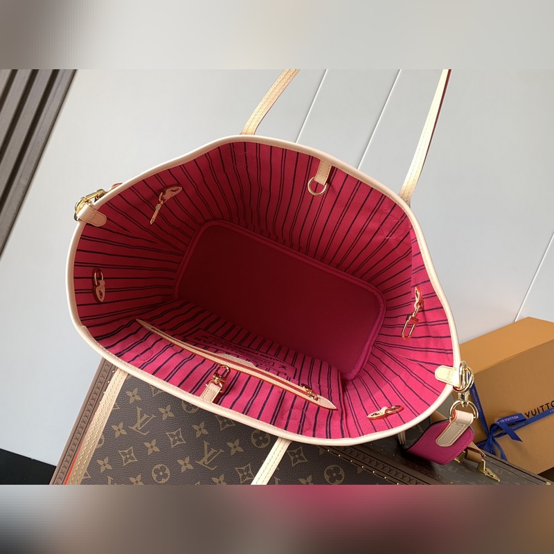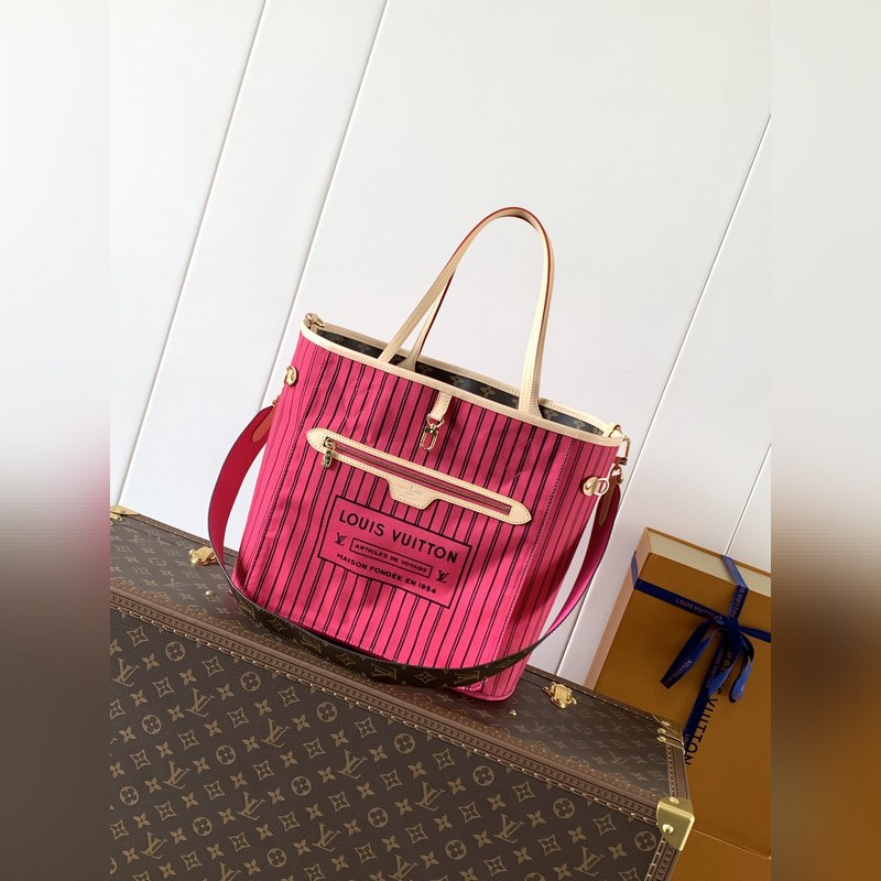 최고급 원단 변환 칩 M12257 로즈 레드 M11947 노란색 M12096 대홍색 루이 비통의 클래식 디자인 중 하나인 Neverfull Bandouli?re Inside Out 중형 핸드백은 이번에는 Monogram 캔버스와 스트라이프 직물을 소재로 사용해 양면 디자인으로 트렌디한 감각을 강조했습니다. 분리 가능한 숄더 스트랩으로 크로스백으로 사용 가능하며 측면의 걸쇠로 Hobo 핸드백으로 변형 가능합니다. 28 x 14 x 31 cm (높이 x 너비 x 길이) Monogram 코팅 캔버스 / 직물 코팅 캔버스와 직물 소가죽 장식 금속 부품 고리 잠금 장치 인쇄 지퍼 내장 포켓 측면 장식 띠 측면 걸쇠 어깨 끈: 분리 가능 조절 불가 가방 끈 길이: 42.0 cm 손잡이: 양손잡이 이 제품은 프랑스 스페인 이탈리아 및 미국에서 생산되었습니다.