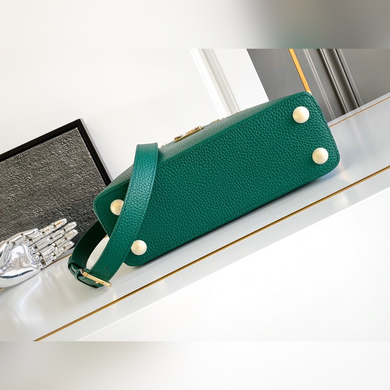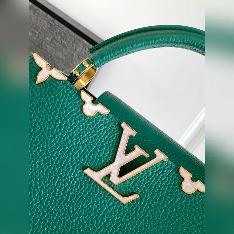 【원료】 M25404 녹색 (동적 칩 버전) 가죽은 이탈리아 A급 가죽으로 품질 금속 부품 원단 수공예 오일 에지 A급 제품입니다. 크기: 27x18x9cm
