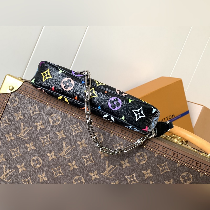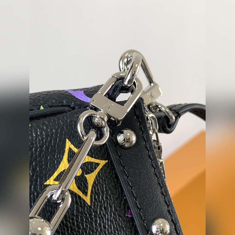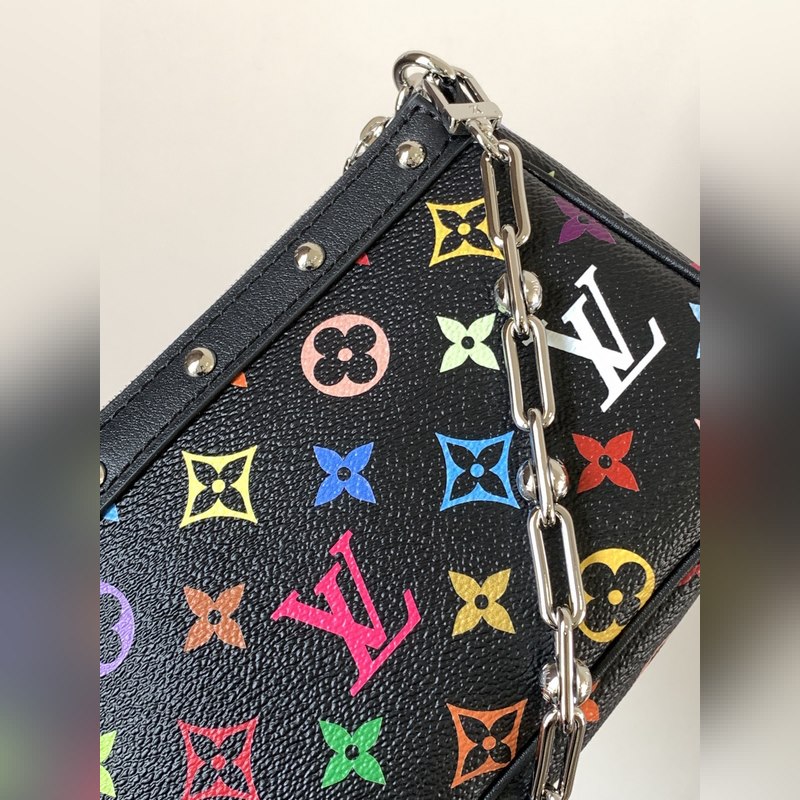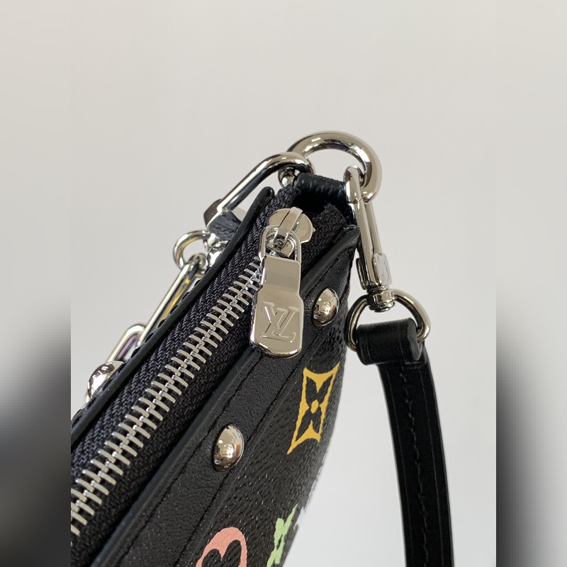 최고급 원단 변환 칩 M13663 화이트 컬러 M13404 화이트 컬러 M13440 인형 이 제품의 Pochette Accessoires 핸드백은 코팅된 캔버스 소재를 사용했으며 다채로운 모노그램 패턴으로 루이 비통과 무라카미 타쿠미의 협업 시리즈의 역동적인 스타일을 표현했습니다. 소가죽 장식과 화려한 금속 부품이 세련된 디테일을 강조하며 분리 가능한 스트랩과 체인으로 다양한 착용이 가능합니다. 13 x 4 x 22 cm (높이 x 너비 x 길이) 모노그램 코팅 캔버스 소가죽 장식 가장자리 직물 내장 금속 부품 지퍼 개폐식 어깨 끈: 분리 가능 조절 불가 가방 끈 길이: 21.0 cm 체인: 분리 가능 체인 반 길이: 20.0 cm 손잡이: 단일 손잡이 분리 가능