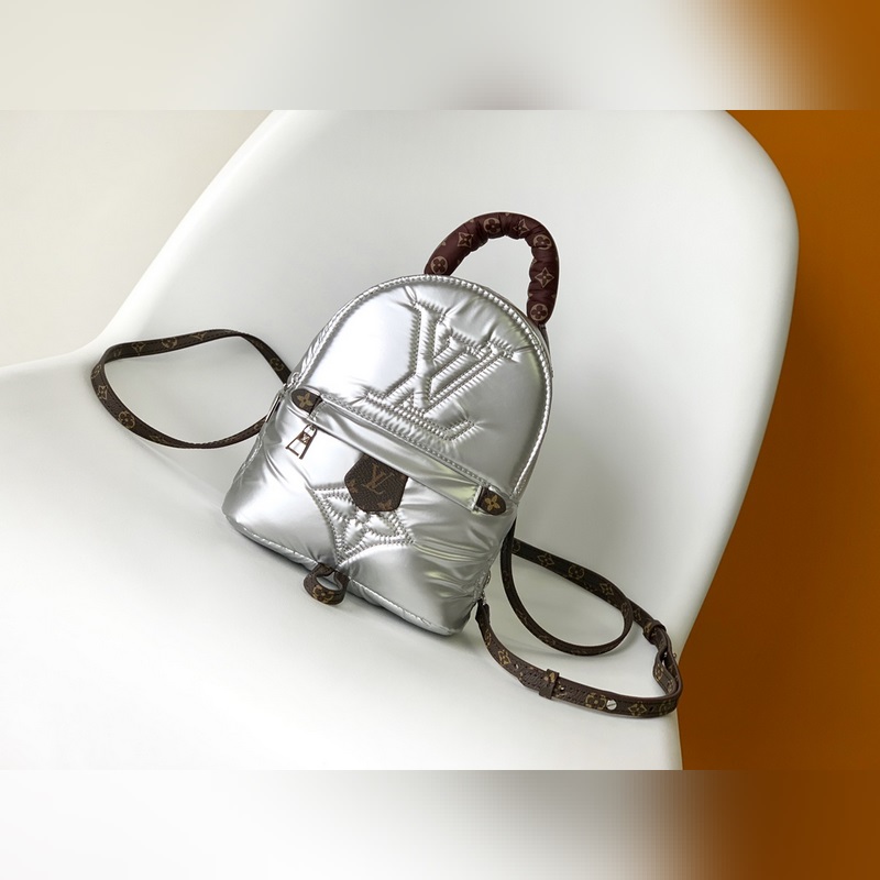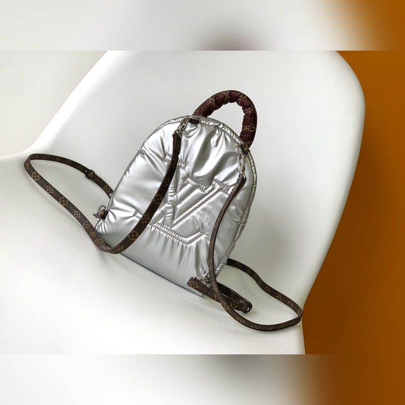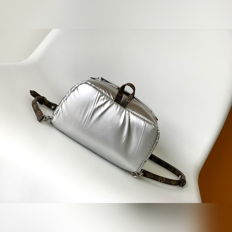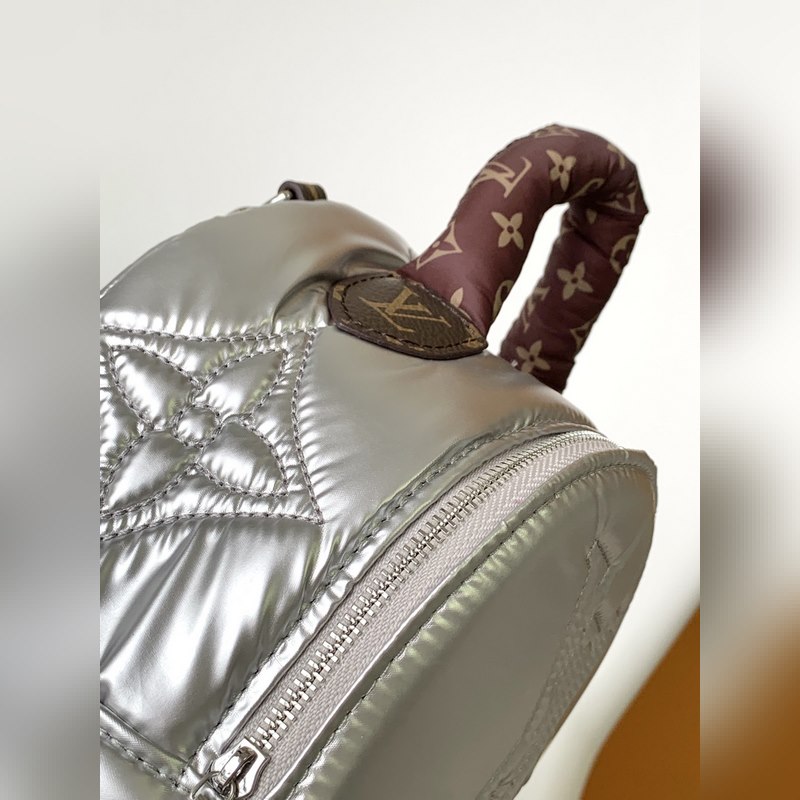 최고 품질의 오리지널 M21060 블랙 실버 네이비 블루 올 겨울 일로우 알스프링스 미니 백팩은 편안한 패딩 처리된 에코닐 재활용 폴리아미드로 만들어졌으며 모노그램 자수 패턴이 특징입니다. 부드러운 손잡이와 길이 조절이 가능한 캔버스 숄더 스트랩은 다양한 착용 옵션을 제공하여 집 거리 또는 스키 리조트에서 역동적인 스타일을 표현할 수 있습니다. 크기: 17 x 22 x 10cm