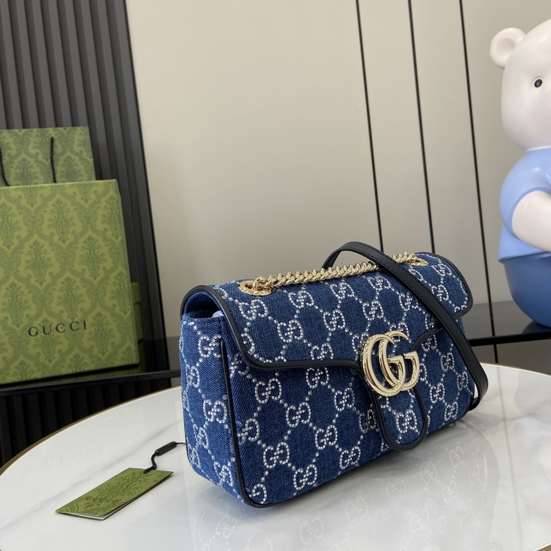 【신제품】 GG 마르몽 시리즈 데님 소형 숄더 백. 이 제품은 구
