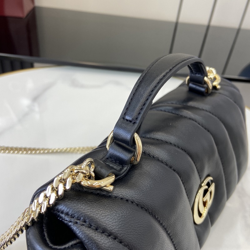 【신제품】 밀라노 패션 위크 기간 중 브랜드 크리에이티브 디렉터 사바토 데 사르노(Sabato De Sarno)가 디자인한 GG 밀라노 시리즈 핸드백이 2025 가을/겨울 패션 쇼에서 첫선을 보이며 밀라노라는 디자인의 영감의 원천을 기념했습니다. 이 숄더백은 새로운 이중 G 모양 액세서리를 정교하게 결합했으며 부드럽고 실키한 GG 프레스드 플러피 가죽을 사용했습니다. 체인 스트랩은 이 가방에 더 많은 스타일링 가능성을 부여하며 편안하게 크로스백으로 연출할 수 있습니다. 부드러운 가죽 광택 있는 연금색 톤 액세서리 가죽 라이닝 더블 G D형 고리 GG 장식 지퍼 포켓 1개 오픈 포켓 1개 립스틱 수납 공간 1개 손잡이 높이 6.1cm 분리 가능한 체인 스트랩 (약 50cm 높이) 스프링 클립 무게: 약 0.5kg 모델 번호: 806017. 크기: 21(길이) x 12.5(너비) x 4.6(두께) 색상: 블랙 전체 가죽/원본 가죽. 이탈리아 디자인