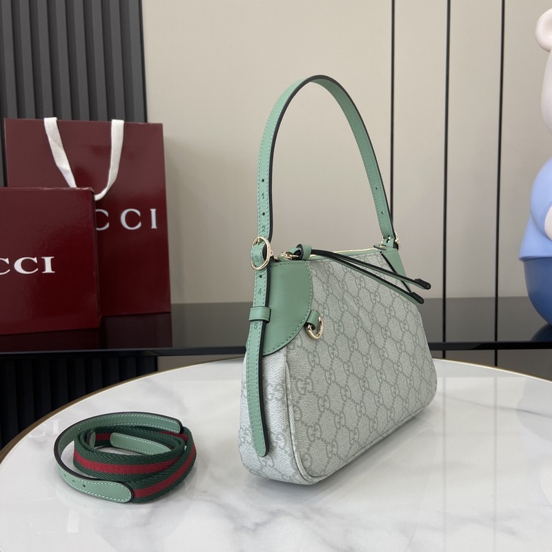 【신제품】 새로운 GG Emblem 시리즈는 브랜드의 영원한 우아함과 뛰어난 장인 정신을 새롭게 재해석했습니다. 이 소형 숄더 백은 조절 가능한 숄더 스트랩과 숫자를 표시하는 구멍 장식이 특징이며 마술 세계에서 영감을 받았습니다. 회색 녹색 GG 모노그램 코팅 직물 회색 녹색 롤링 가죽 트림 옅은 금색 톤의 액세서리 빨강과 녹색 스트라이프 면 소재 안감 분리 가능한 물품을 걸 수 있는 D형 고리 포함 수동 조절 가능한 손잡이; 높이 16cm - 27cm 내부: 개방형 포켓 1개 조절 가능한 가죽 어깨 끈 (높이 47cm - 57cm) 지퍼 개폐식 모델 번호: 815218. 크기: 24.5cm (너비) x 16cm (높이) x 5cm (깊이) 무게: 약 0.25kg 색상: 회록색 PVC/원본 가죽. 이탈리아 디자인