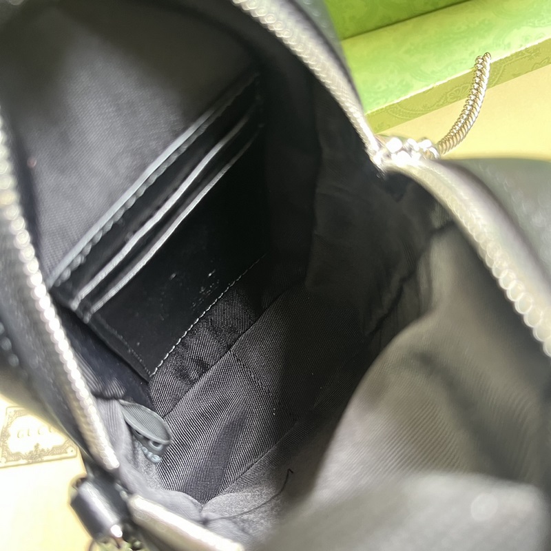 구찌 블론디 시리즈 미니 숄더 백. 구찌 블론디 시리즈는 브랜드의 대담한 패턴과 동일한 톤의 가죽 디자인을 결합해 곳곳에서 은은한 우아함을 풍깁니다. 이 시리즈는 원형 기하학적인 스타일의 상호 연결된 이중 G 로고를 정교하게 결합해 구찌의 현대적인 미학을 완벽히 표현했습니다. 브랜드 로고 디테일이 더해진 이 블랙 가죽 미니 백은 플로럴 디테일의 가죽 스트랩과 함께 독특한 매력을 선사합니다. 블랙 가죽 타프타 안감 원형 상호 연결된 이중 G 가죽 패치 가죽 스트랩. 무게: 약 0.294kg. 모델 번호: 760315. 크기: 18(길이) x 10.5(너비) x 4.5cm(두께) 색상: 블랙/원본 가죽. 이탈리아 디자인