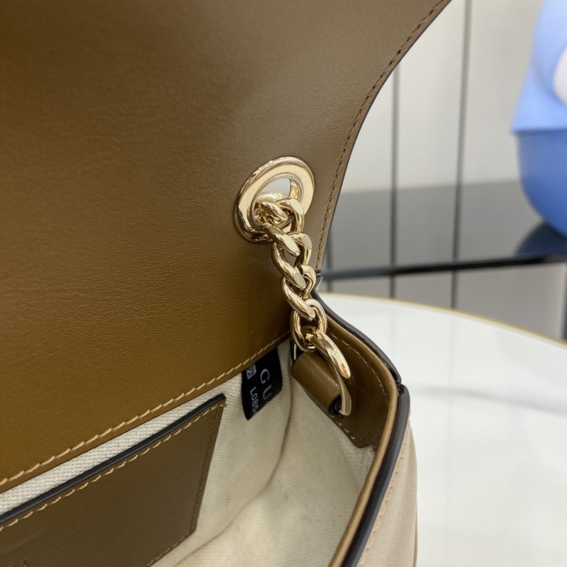 【신제품】 구찌 블론디 시리즈 미니 숄더 백 Gucci Blondie 시리즈의 새로운 핸드백은 1970년대 초반에 처음 선보인 브랜드 시리즈의 클래식 로고를 장식하며 전통적인 매력과 현대적인 트렌드를 완벽하게 조화시켜 브랜드의 클래식 디자인과 현대적 정수를 탁월하게 표현합니다. 이 미니 숄더 백은 구찌 안코라 레드 가죽으로 제작되었으며 에나멜 브랜드 원형 로고와 골드 톤 체인 스트랩이 특징입니다. 모델 번호: 815711. 크기: 21.5(길이) x 11(너비) x 8(두께) 색상: 브라운 매트 가죽/원본 가죽. 이탈리아 제작