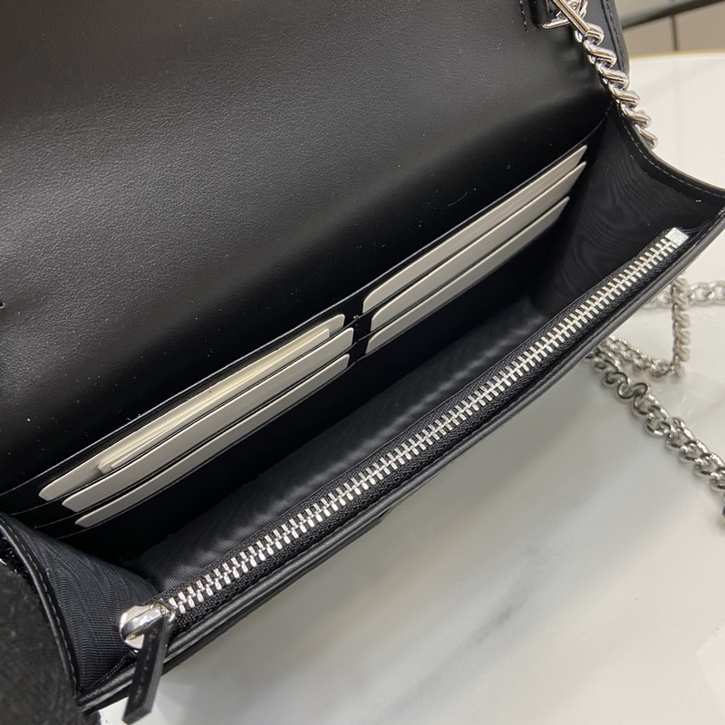 【신제품】 GG Marmont 시리즈 체인 스트랩 지갑. 브랜드를 상징하는 패턴이 변화무쌍하면서도 클래식한 본질을 잃지 않는 상징적 요소로 재탄생해 새로운 시리즈에 화려함을 더했습니다. 이 체인 스트랩 지갑은 블랙과 우드 컬러의 GG Supreme 캔버스와 블랙 가죽으로 정교하게 제작되었으며 이중 컬러의 클래식한 이중 G 로고가 장식되었습니다. 검은색과 우드색 GG Supreme 캔버스 검은색 가죽 테두리 연금색 톤 액세서리 구름 무늬 직물 라이닝 이중 색상 GG 로고 내부: 6개의 카드 슬롯 1개의 평평한 포켓 1개의 지퍼 포켓 1개의 오픈 슬롯 거울 체인 스트랩 버튼 클로저 무게: 약 0.42kg. 모델 번호: 790060. 크기: 12.5(길이) x 20(너비) x 4cm(두께) 색상: 블랙/원본 가죽. 이탈리아 디자인 최대 수납 용량: iPhone Plus AirPods 이어폰 및 립스틱