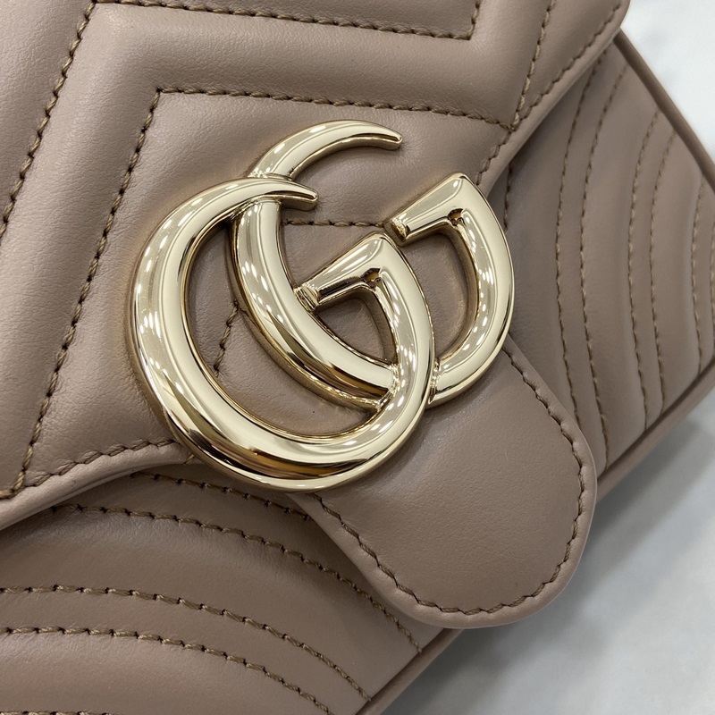 수입 원산지 가죽 【신제품】 GG Marmont 시리즈 미니 핸드백. GG Marmont 시리즈는 클래식 컬러 조합으로 새로운 실루엣을 선보이며 초가을의 매력을 강조합니다. 이 핸드백은 구찌 밀크티 컬러(Rosso Ancora)로 퀼팅된 V형 가죽으로 제작되었으며 탈착 가능한 스냅 버튼과 연금색 체인 스트랩이 특징입니다. 자석식 플랩 개폐 장치에 이중 G 로고가 장식되어 전체 디자인의 매력을 한층 높였습니다. 구찌 밀크티 컬러(Rosso Ancora) 스티치 V형 가죽 구찌 밀크티 컬러(Rosso Ancora) 가죽 롤링 엣지 연금색 톤 액세서리. 모델 번호: 811238. 크기: 17 x 13 x 6cm. 색상: 밀크티 색상/수입 원산지 가죽.