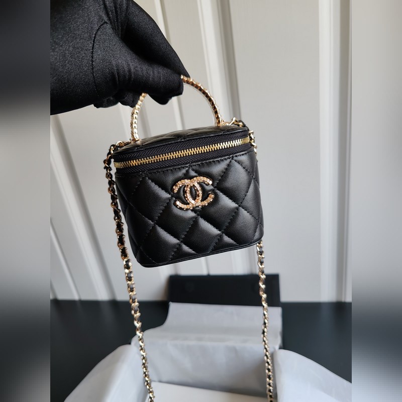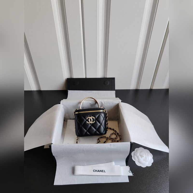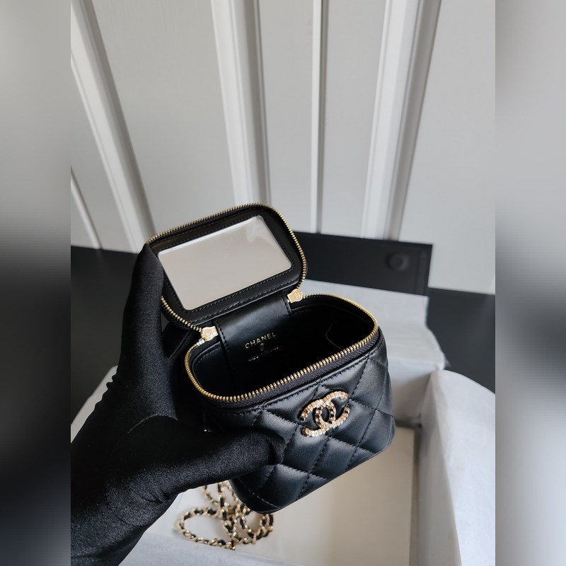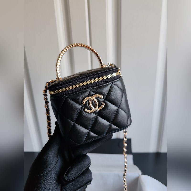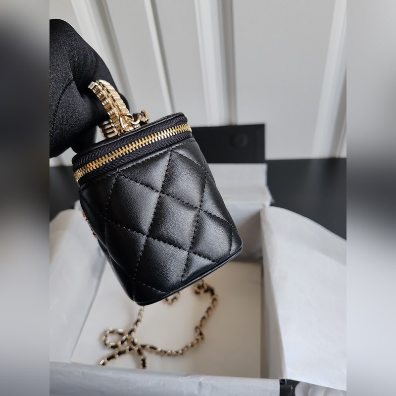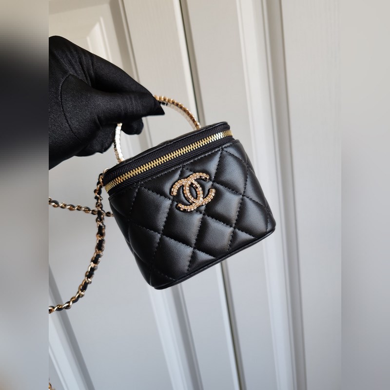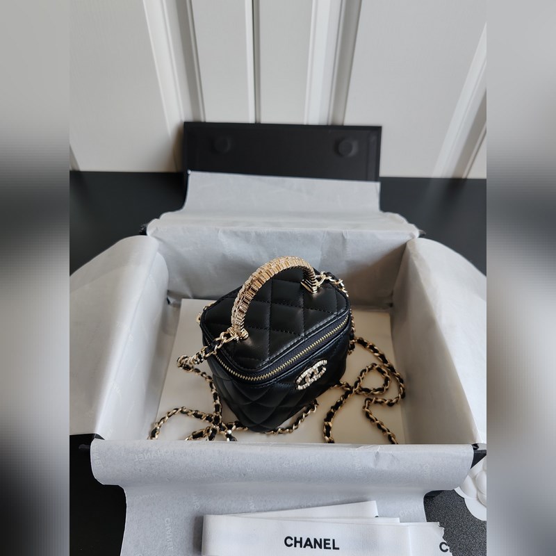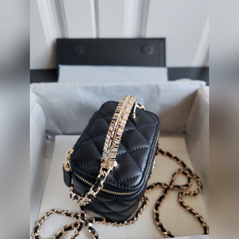 24B 다이아몬드 손잡이 박스형 화장품 가방 GR 양가죽과 14K