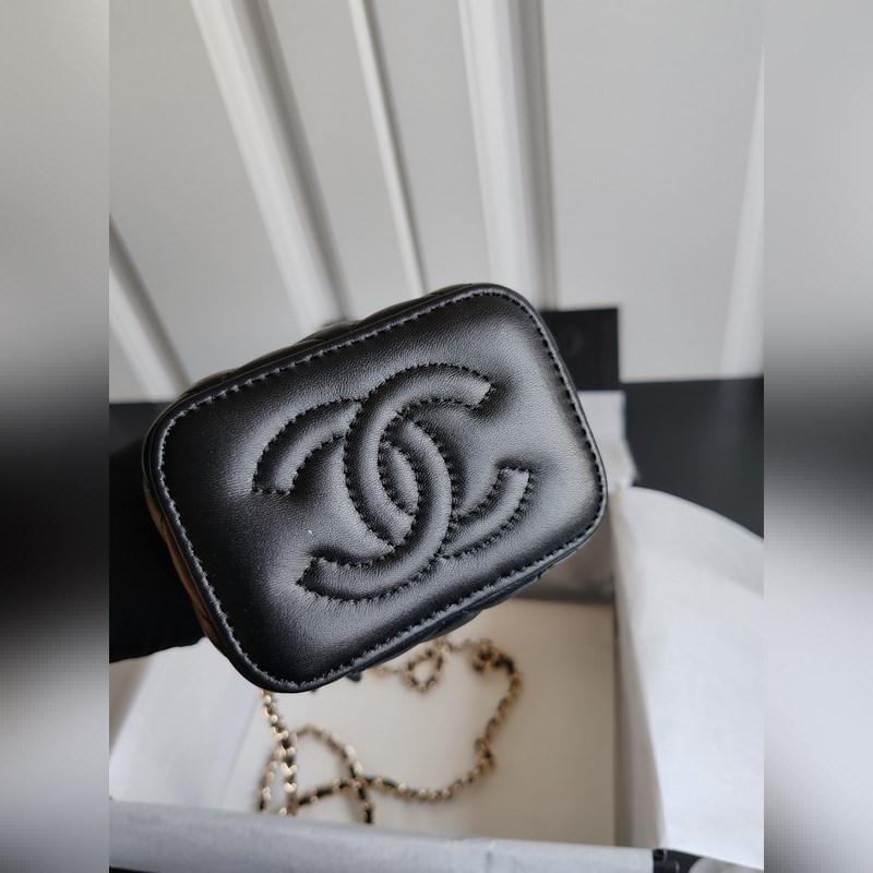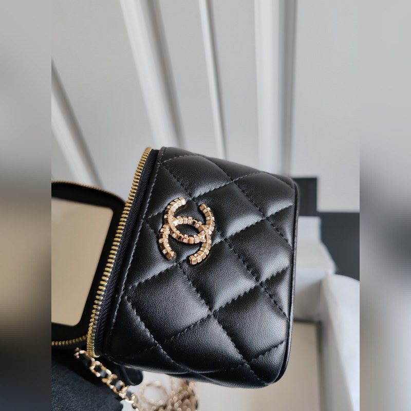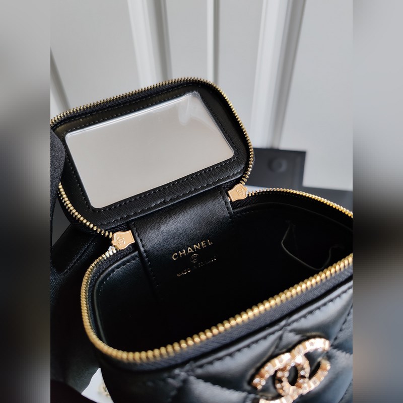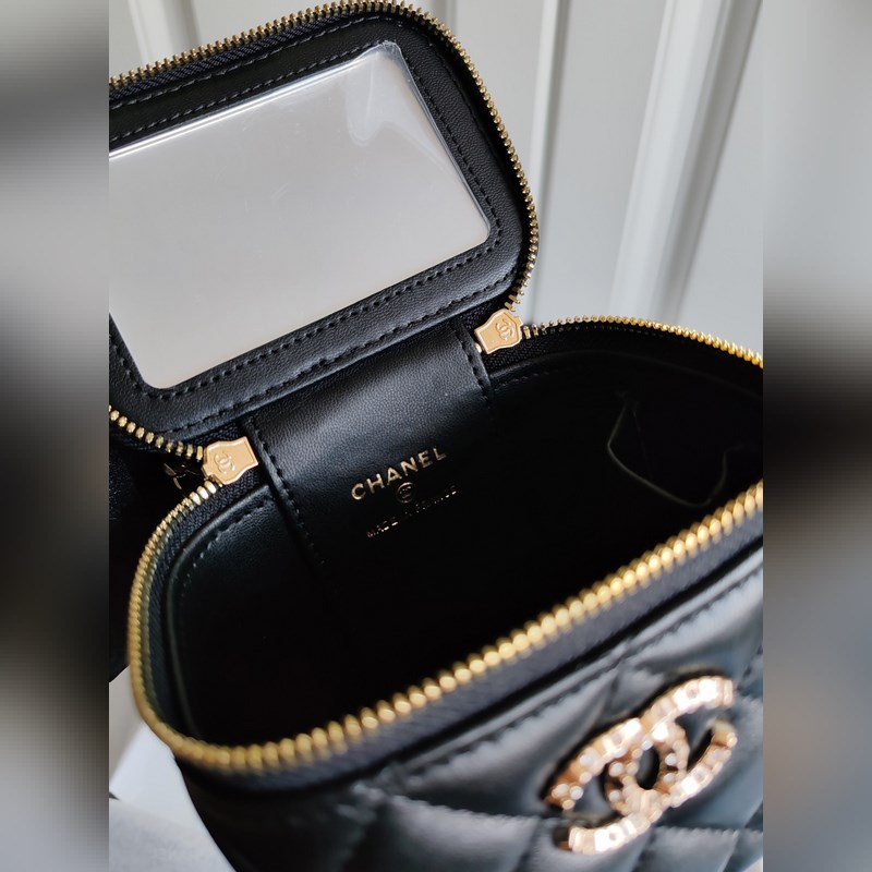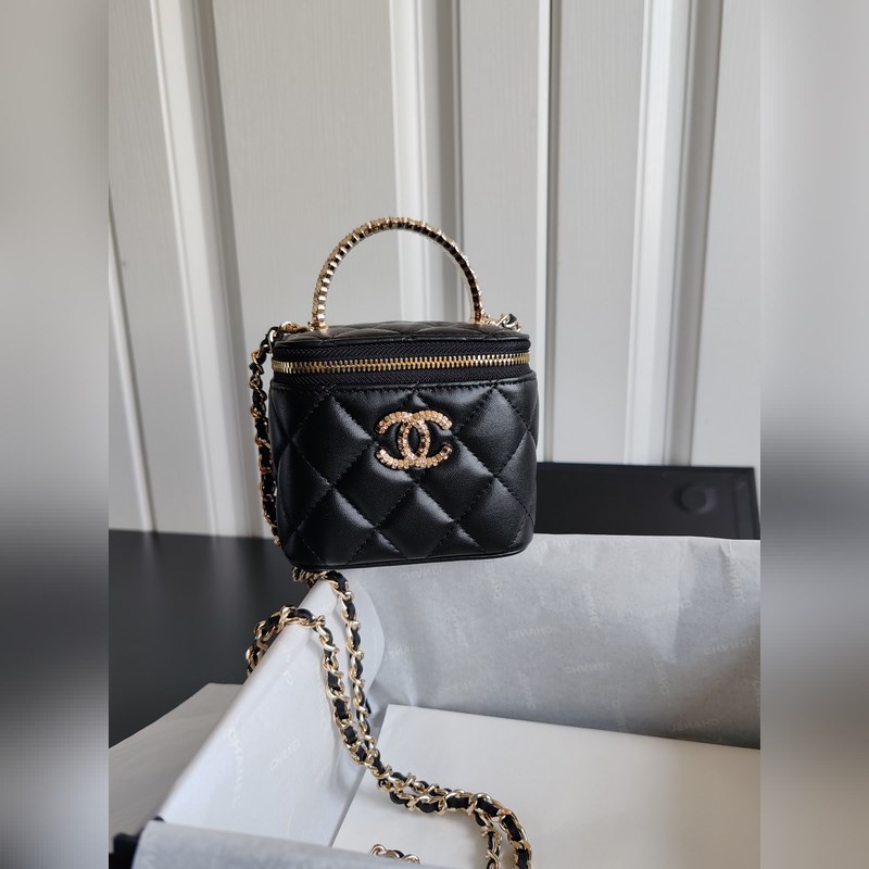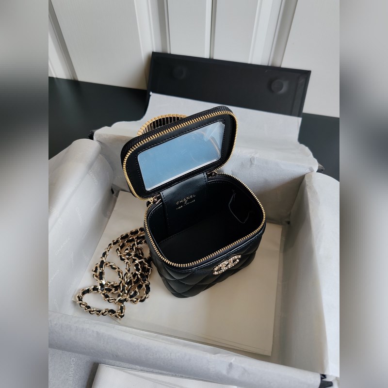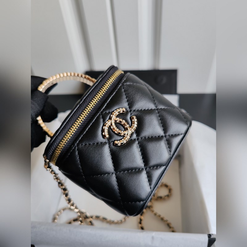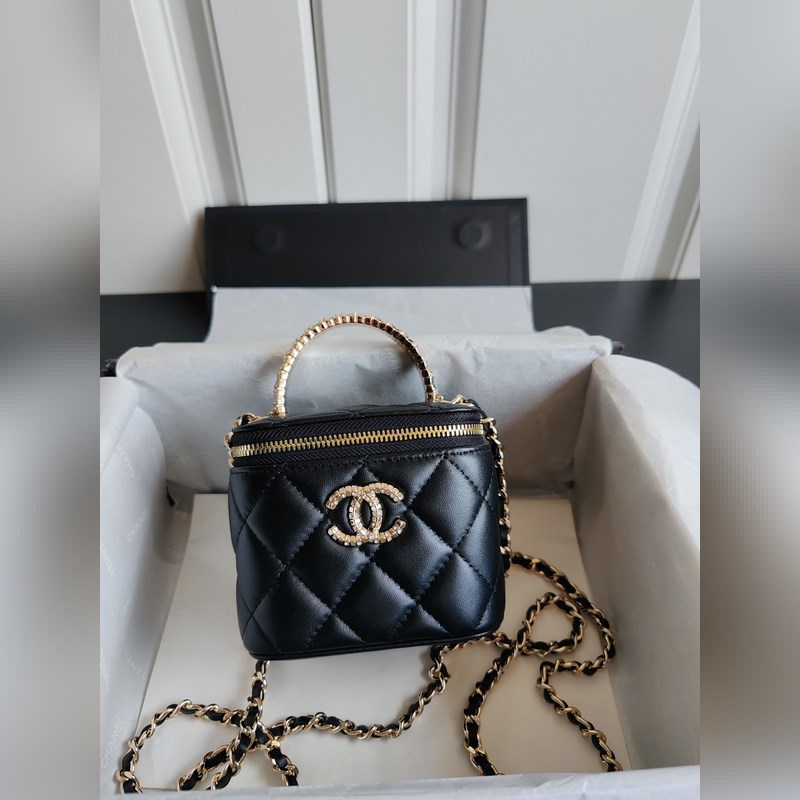 24B 다이아몬드 손잡이 박스형 화장품 가방 GR 양가죽과 14K