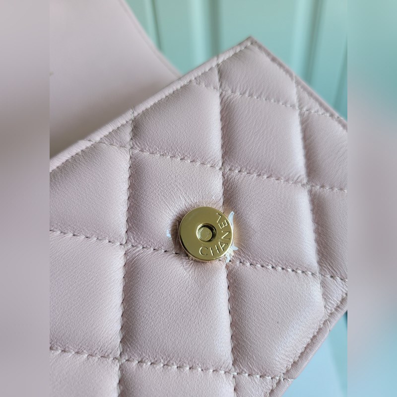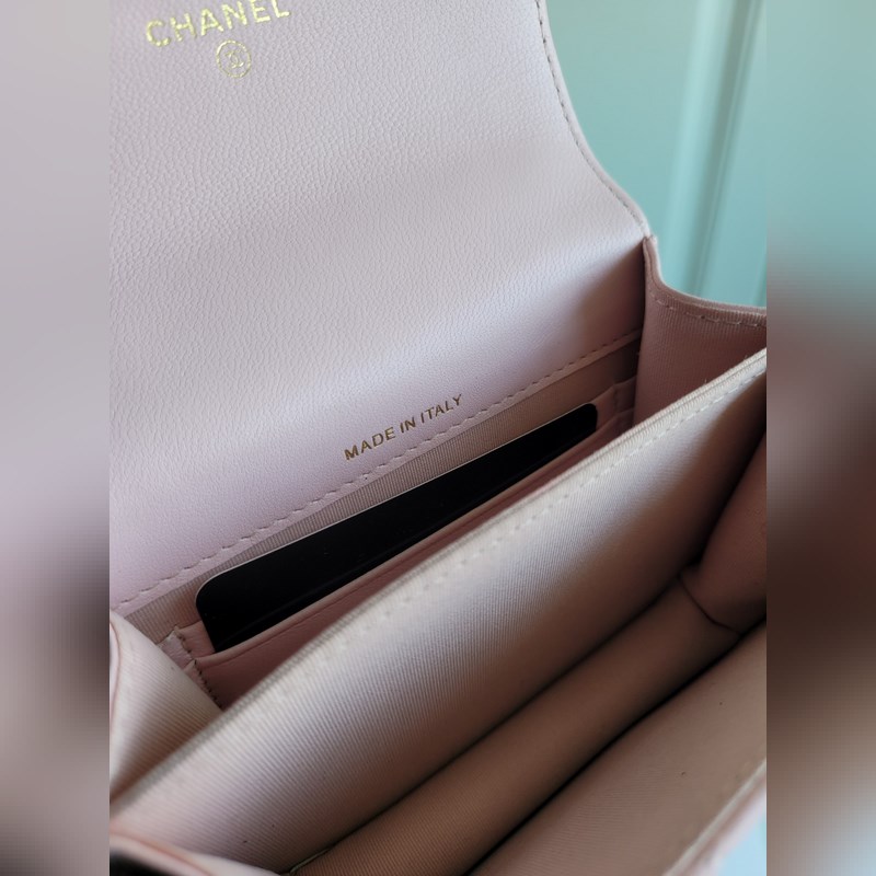 현재 재고 봄여름 에나멜 손잡이 작은 가방 이중 C 로고 특수 두꺼운 체인 스트랩 봄날 외출에 필수품인 소형 가방 단순히 패션 액세서리로만 사용되는 것이 아니라 사진 찍을 때 포즈를 취하기에도 완벽 가볍게 메고 다니기에도 전혀 부담 없습니다 또한 이 두꺼운 체인 디자인 자체만으로도 매력적입니다 이 제품에는 특별한 디자인이 더해졌습니다 바로 이 흰색 글자와 잠금 장치 그리고 다른 쪽에는 이중 Clogo가 있어요 디자인 요소들이 모두 강조되어 있습니다 여러분도 마음에 드시나요? 사이즈: 13×9.5×6cm 99164