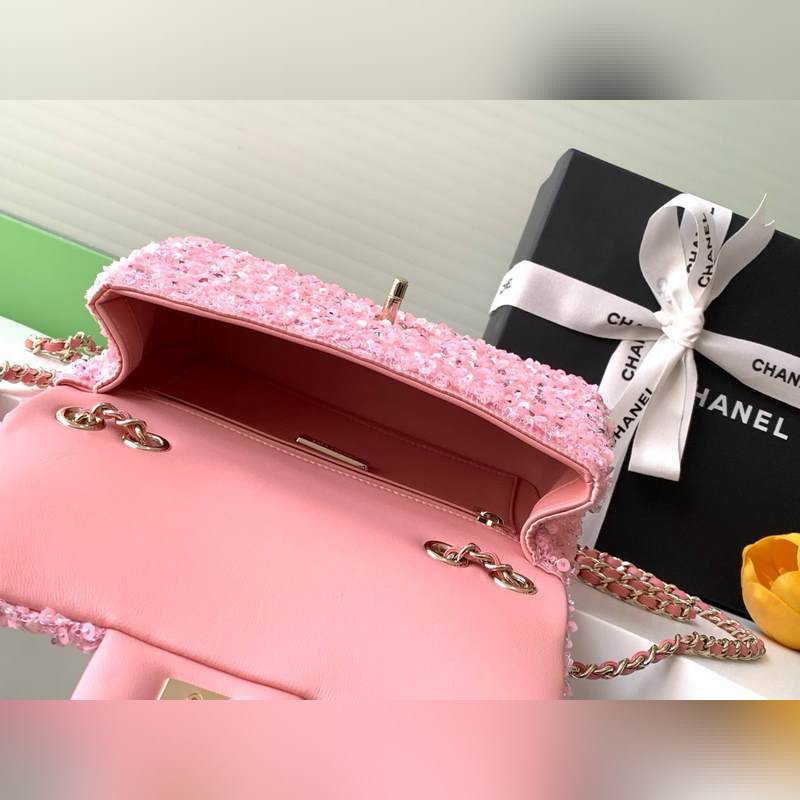 샤넬 24K 특별 에디션 글리터 시리즈 CF 실버 핑크 가을겨울 시즌 달콤한 디자인 출시 모델 번호 A69900 사이즈 20cm