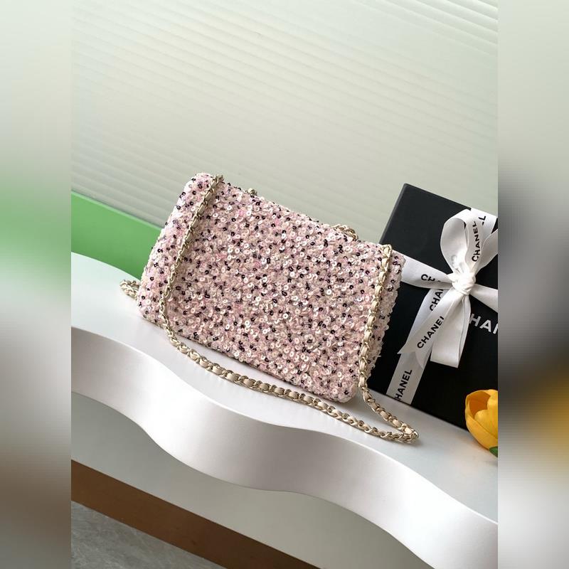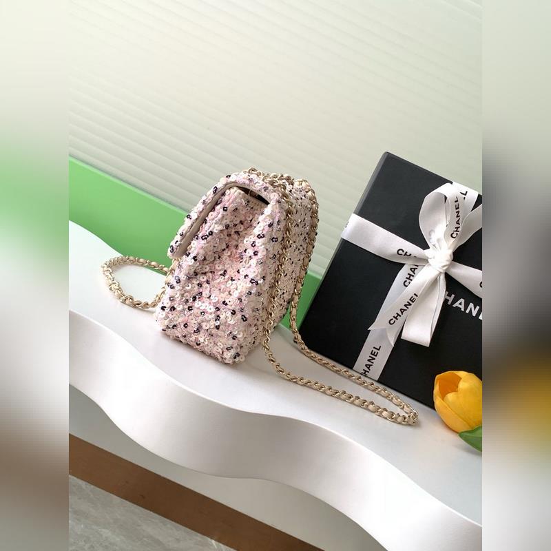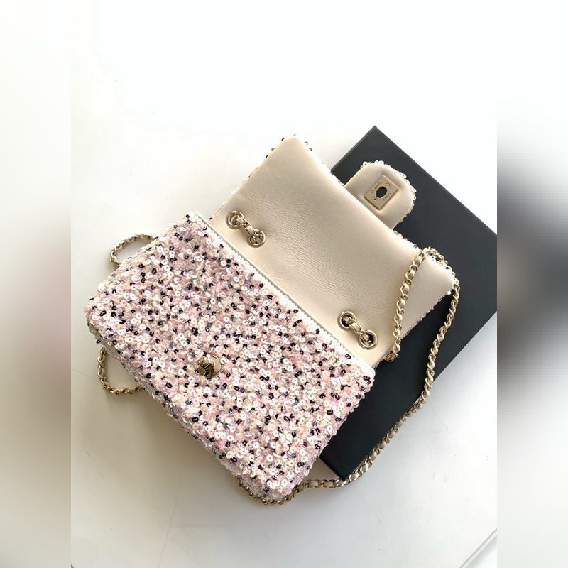 샤넬 24K 특별 에디션 글리터 시리즈 CF 옐로우 따뜻하고 고급스러운 가을과 겨울을 위한 모델 번호 AS4298 사이즈 20cm
