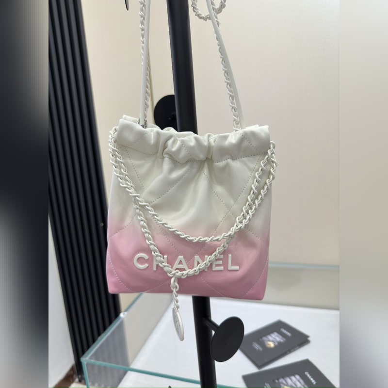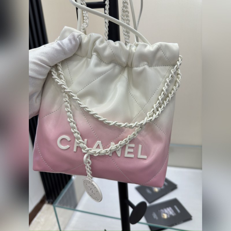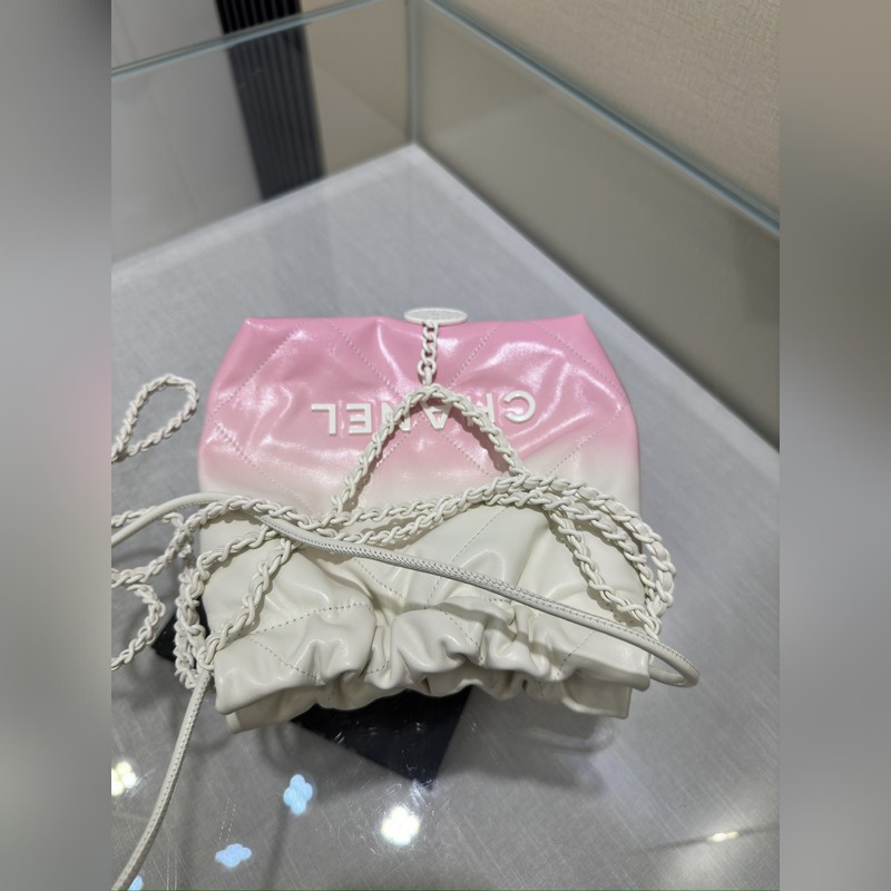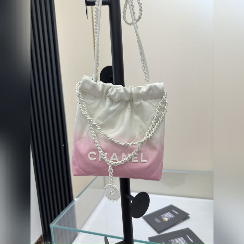 신제품 그라데이션 핑크 미니 22백 딸기 밀크셰이크 핑크 이 색상 정말 너무 예쁘죠!!! 작고 정교하며 비교할 수 없는 고급스러운 럭셔리를 풍깁니다. 저항할 수 없는 매력으로 마치 정교하게 조각된 예술품처럼 구운 도자기 CHANEL 로고가 장식되어 빛나며 럭셔리함을 강조하면서도 가방의 세련된 느낌을 유지합니다. 마치 빛나는 광환처럼 당신을 모든 시선의 중심에 서게 해줍니다. 정장이나 캐주얼 의상 모두에 어울리는 이 가방은 당신의 패션 필수품이 될 것입니다. 크기: 20×19×6cm