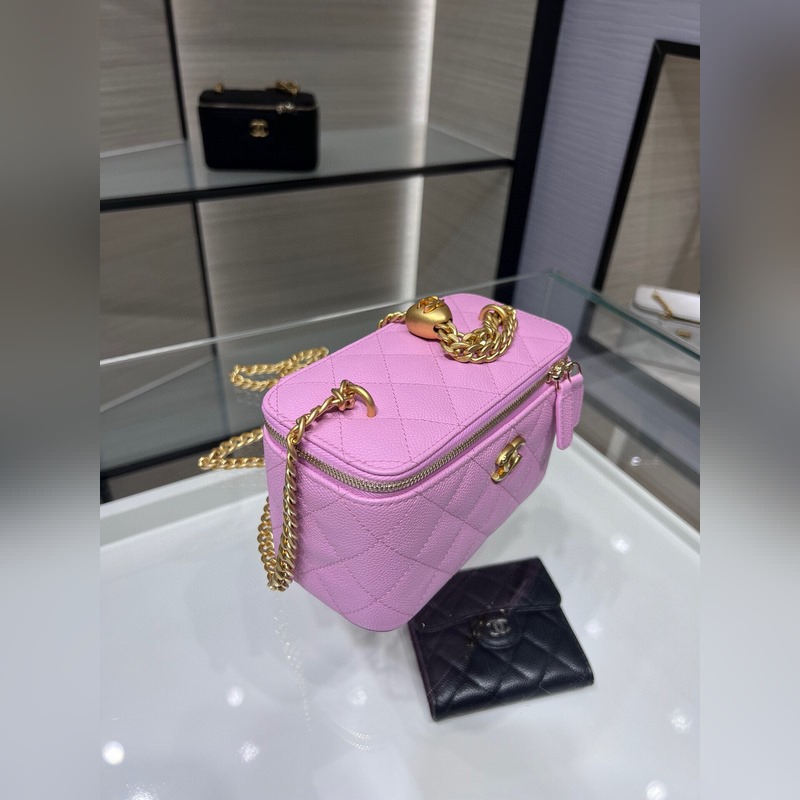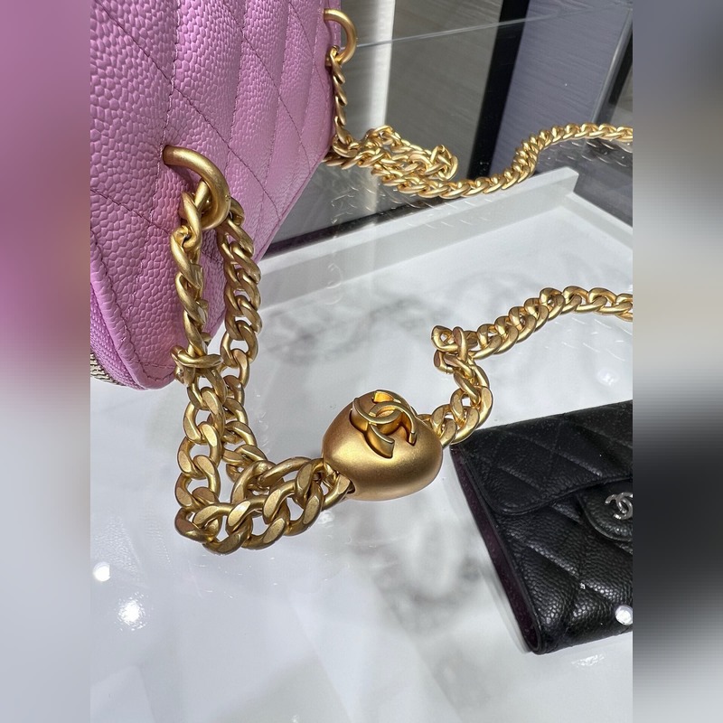 샤넬 23P 신상 박스 백 가장 아름다운 하트 조절 클립 조절 가능한 체인 스트랩 캐비어 디자인 이중 C 부조 공법 로고로 정교하고 아름다운 : AP3204Y 크기 17x9.5x8