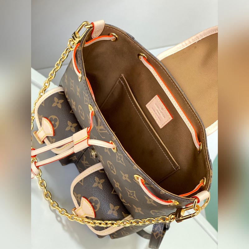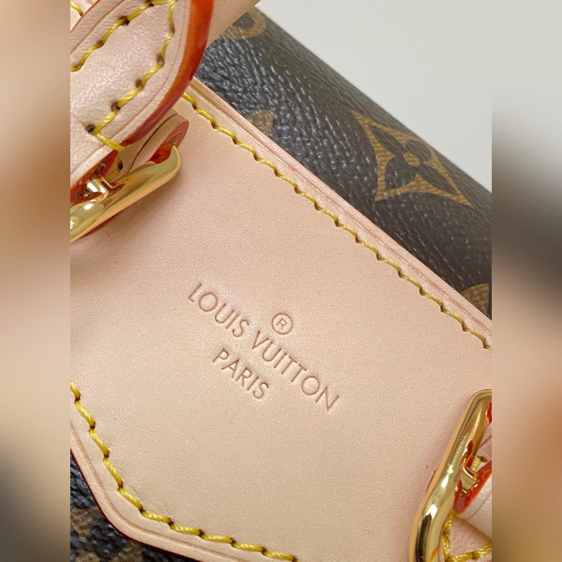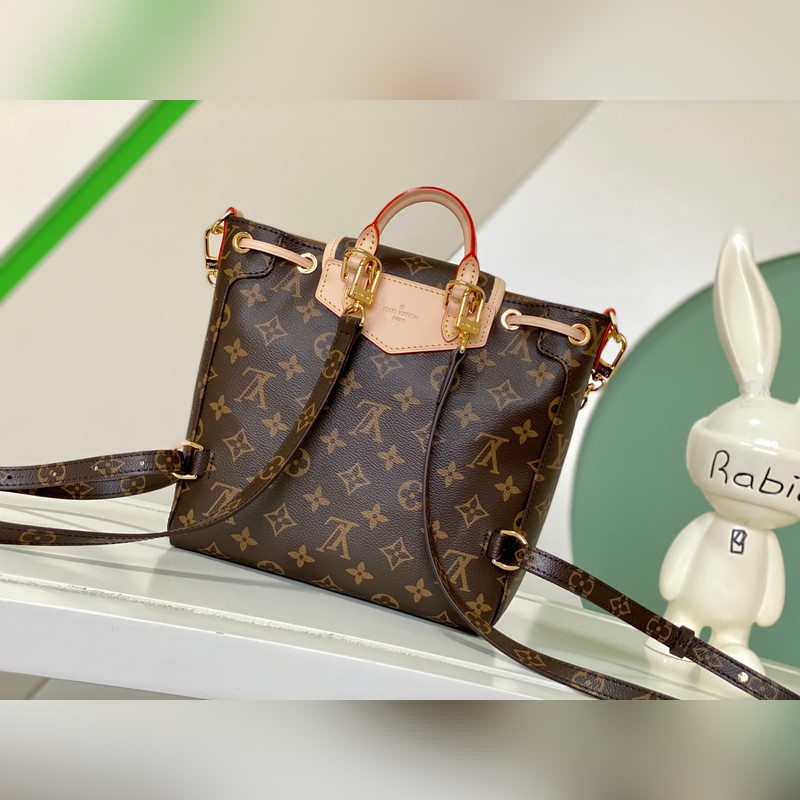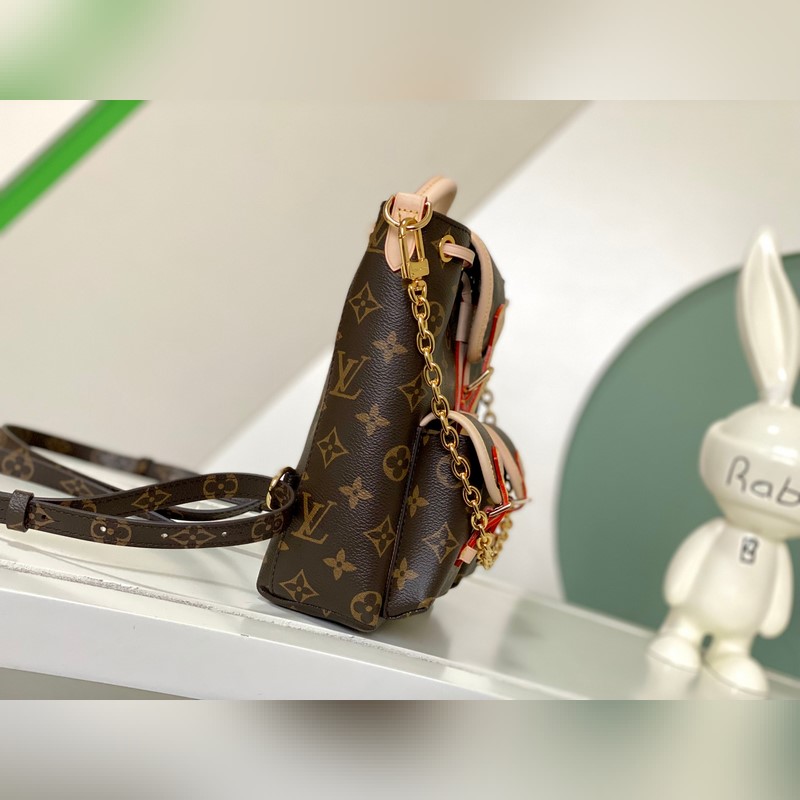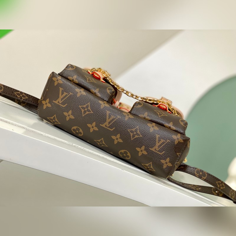 [하이위안 가족 사진 촬영] M46932 오래된 꽃 배낭 시리즈 소풍 작은 배낭 이 작고 실용적인 소풍 작은 배낭은 모노그램 캔버스에 가죽 트리밍이 되어 있으며 하이킹 느낌을 줍니다. 메인 수납공간은 조절 가능한 슬라이드 패스너로 닫을 수 있으며 앞쪽에 스냅 포켓이 두 개 있습니다. 상단 손잡이 외에도 체인이 있어 운반 방법을 자유롭게 바꿀 수 있습니다. 크기: 21.0 x 23.0 x 10.0cm