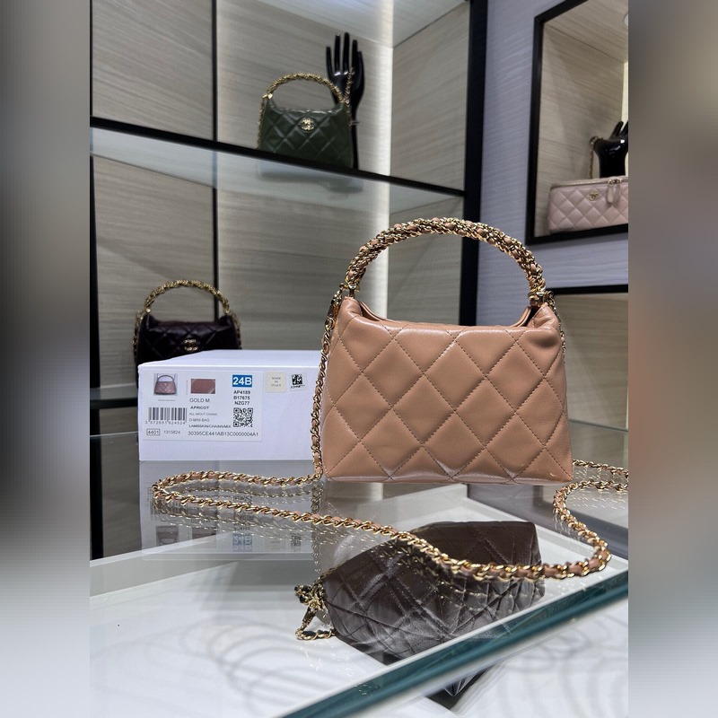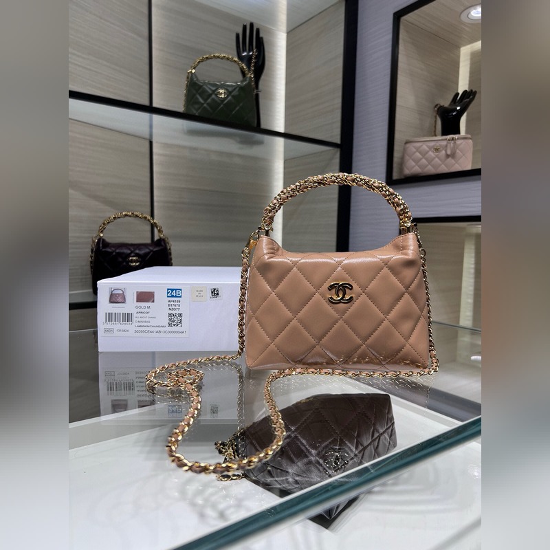 샤넬 24B 최신 모델 회전 손잡이 체인 스트랩 점심 가방 오일 왁스 가죽 AP4189Y 사이즈 18.5×13×7 cm