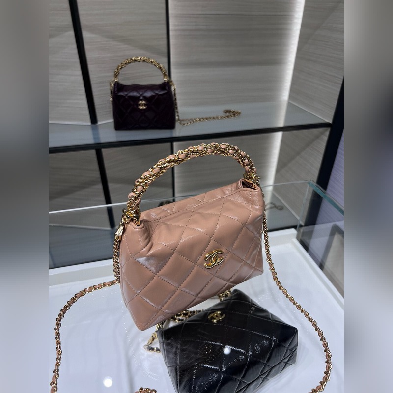 샤넬 24B 최신 모델 회전 손잡이 체인 스트랩 점심 가방 오일 왁스