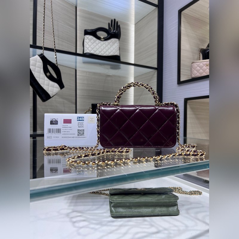샤넬 24B 최신 모델 회전 손잡이 체인 스트랩 휴대폰 가방 오일 왁