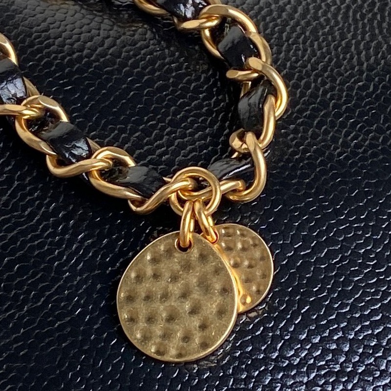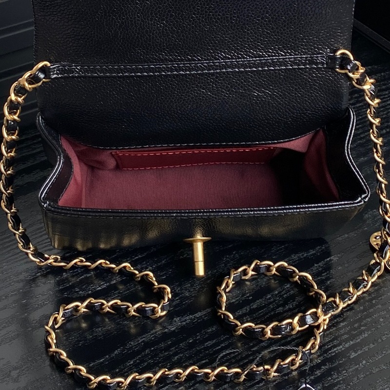 Chane1 24k AS5218 CF 중고 신형 간결하고 고급스러운 우아함 입자 압화 광택 소가죽과 금속 장식 복고풍 스타일 시대를 초월한 디자인 샤넬 팬들의 새로운 애정 아이템 착용감 최고 사이즈: 13×17.5×6