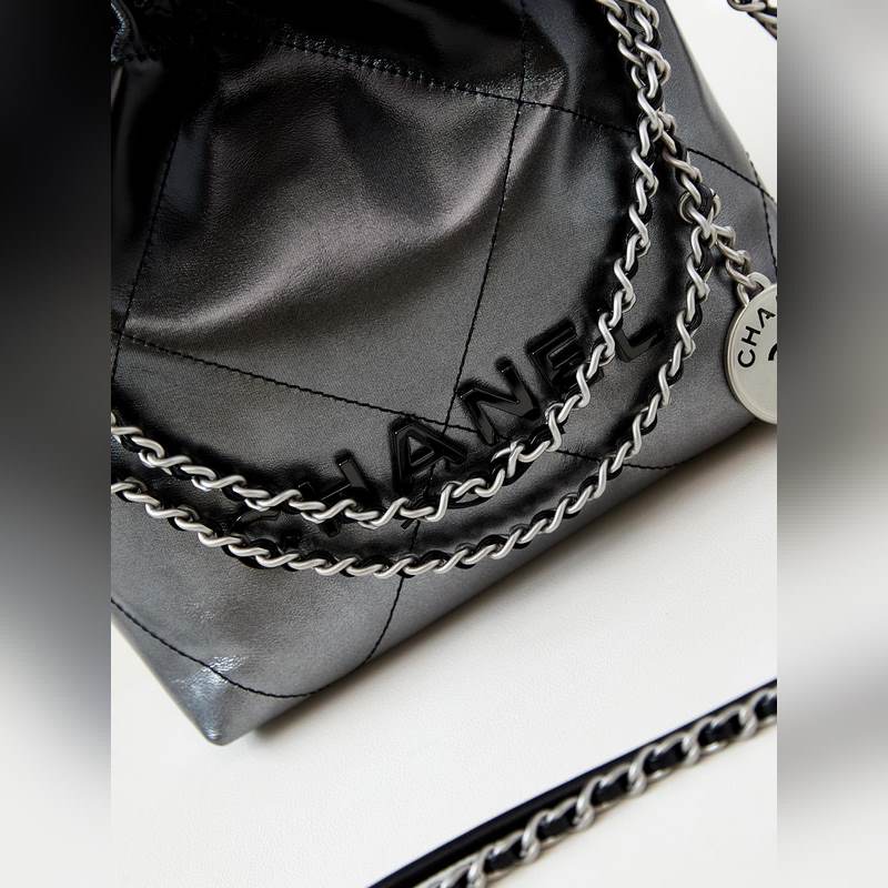 24S 신제품 그라데이션 실버 블랙 미니 22백 노란색이 정말 예쁘죠! 이 색상!!! 작고 정교하며 비교할 수 없는 고급스러운 럭셔리를 발산해 저항할 수 없어요. 마치 정교하게 조각된 예술품처럼 도자기처럼 CHANEL 로고가 포인트로 장식되어 빛나며 럭셔리함을 강조하면서도 가방의 세련된 느낌을 유지합니다. 마치 빛나는 광환처럼 당신을 모든 시선의 중심에 서게 해줍니다. 정장이나 캐주얼룩과도 완벽하게 어울리는 이 가방은 당신의 패션 필수품이 될 것입니다. 모델 번호 AS3980 크기 19-20-6 전체 포장 포함