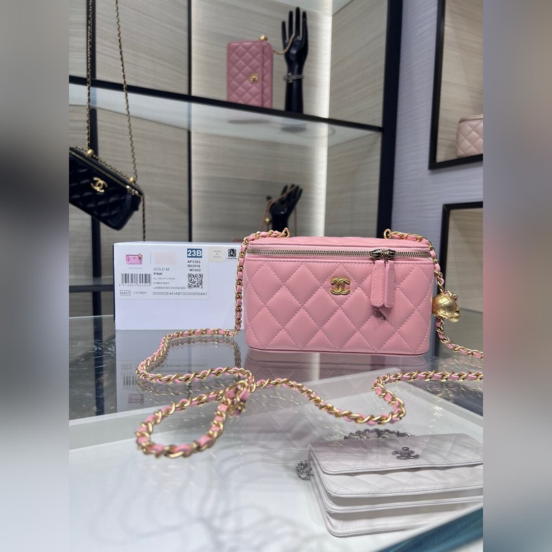 샤넬 24K 신제품 금구슬 장박스 조절 가능한 체인 스트랩 장방형 체인 박스 양가죽 가죽 내장 내부에 작은 거울 AP2303Y 크기: 17×9.5×8 cm