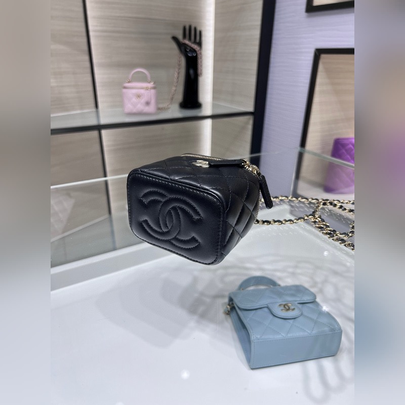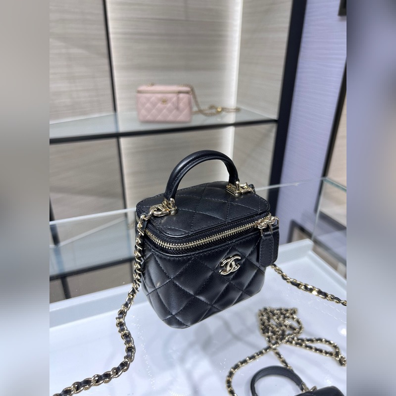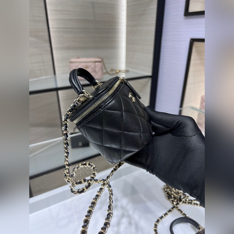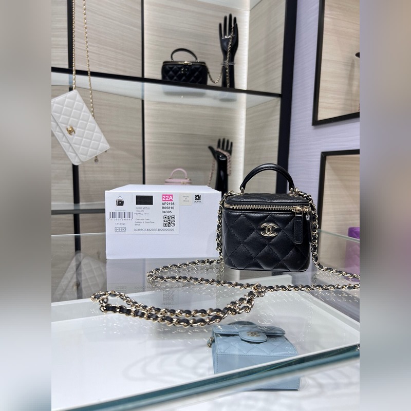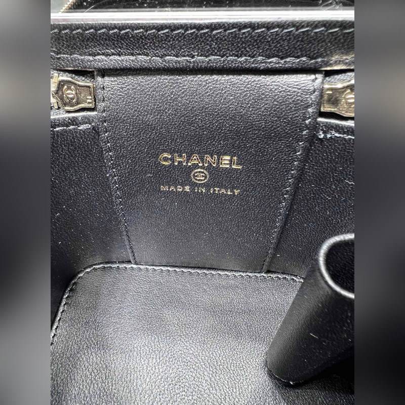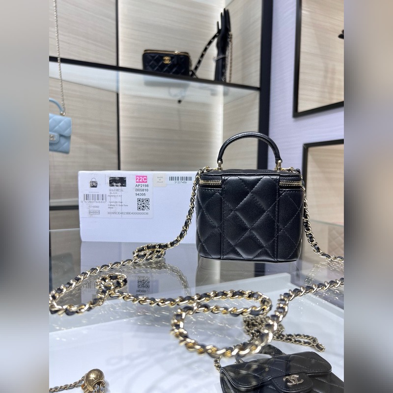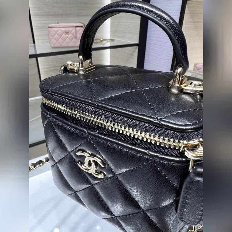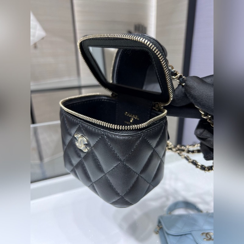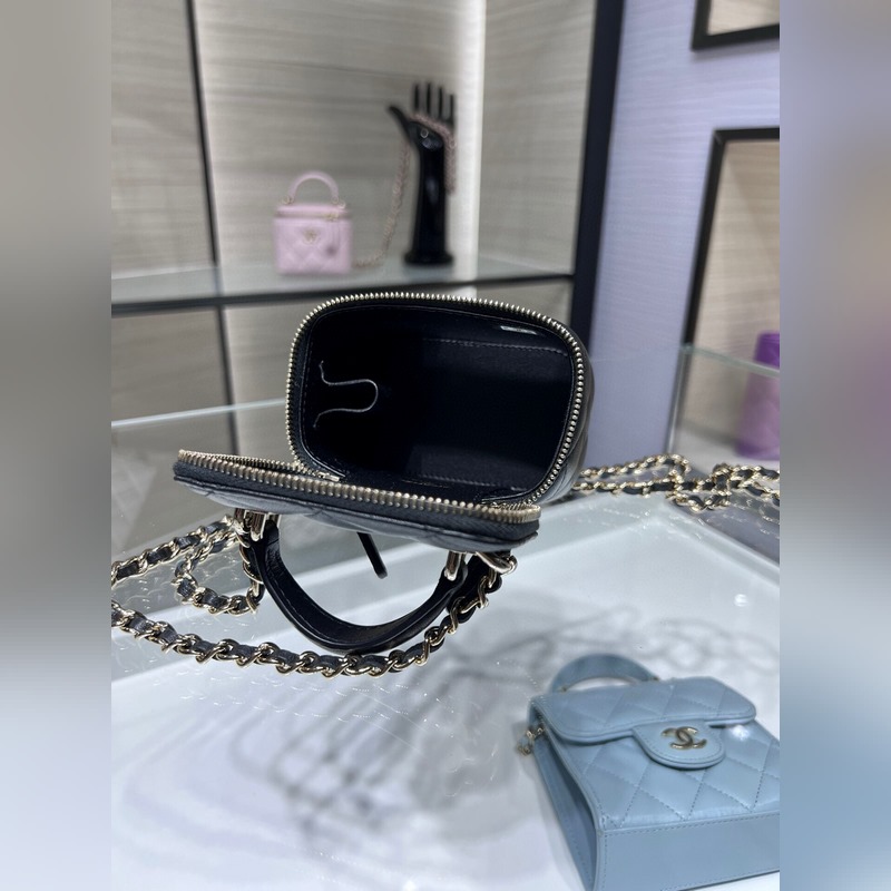 샤넬 24A 신제품 최신 모델 내장 소형 거울 손잡이 달린 화장품 케이스 소형 수납 상자 원본 가죽 수공예 시리즈 AP2198Y 크기: 11×8.5×7cm.