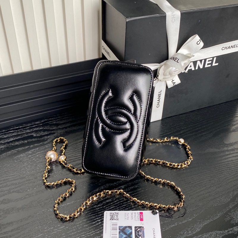 Chane1 24K 진주 디자인 화장품 가방 AP4285 정말 고급스러워요! 고품질 양가죽 소재를 사용해 광택이 정말 훌륭하고 촉감도 매우 부드럽습니다. 가장 매력적인 부분은 체인에 진주 알파벳 장식이 더해져 세련됨이 극대화되었습니다. 실물은 정말 제 마음을 사로잡네요. 사이즈: 17cm