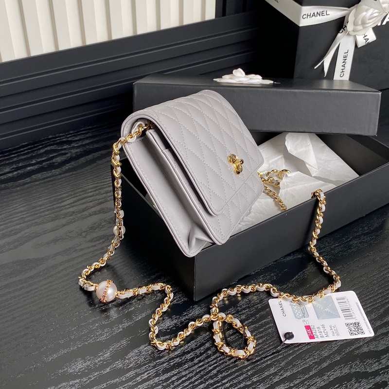Chane1 24K 진주 디자인 AP4282 woc 정말 고급스러워요! 고품질 양가죽 소재를 사용해 광택이 정말 훌륭하고 촉감도 매우 부드럽습니다. 가장 매력적인 부분은 체인에 진주 알파벳 장식이 더해져 세련됨이 극대화되었습니다. 실물은 정말 제 마음을 사로잡네요. 사이즈: 19cm