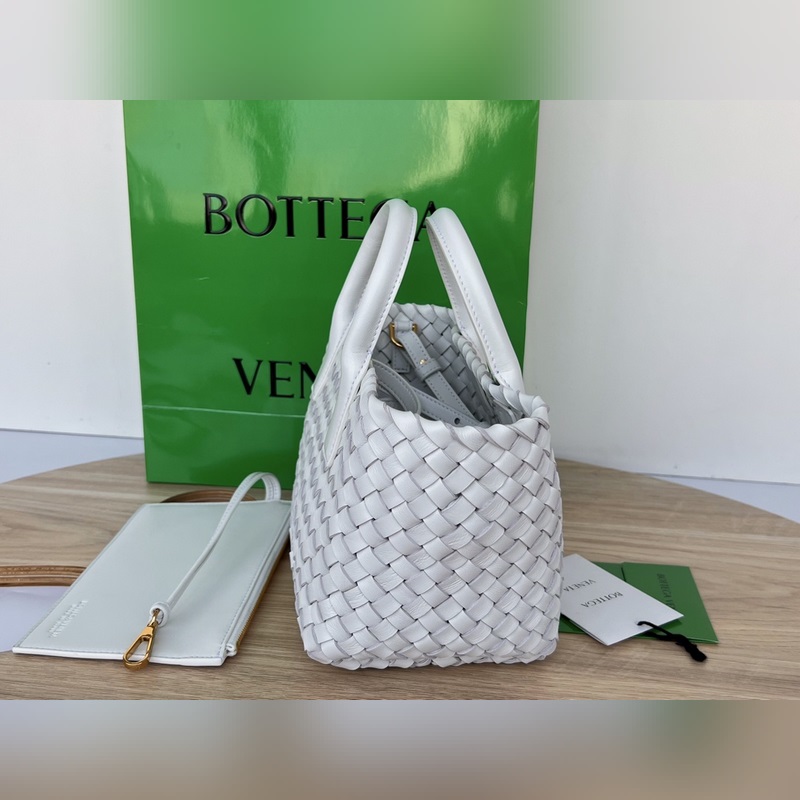 신제품 Mini Cabat 709464는 이 브랜드 역사상 가장 클래식한 디자인 중 하나입니다. 가방 몸체에 무봉제 디자인이 전통적인 직조 기술의 장인 정신을 강조합니다. 중간 크기의 사이즈와 생동감 있는 컬러 조합으로 작은 바구니에 새로운 생명을 불어넣었습니다. 斜?과 어깨에 걸 수 있는 디자인으로 다양한 사용 환경에 적합하며 내부에 이동 가능한 작은 카드 지갑이 포함되어 모든 물품을 수납할 수 있습니다. 세밀한 직조가 클래식한 매력을 더했으며 디자이너의 세심한 배려로 모든 연령층을 위해 3가지 사이즈를 선택할 수 있습니다. 크기: 20x15x12