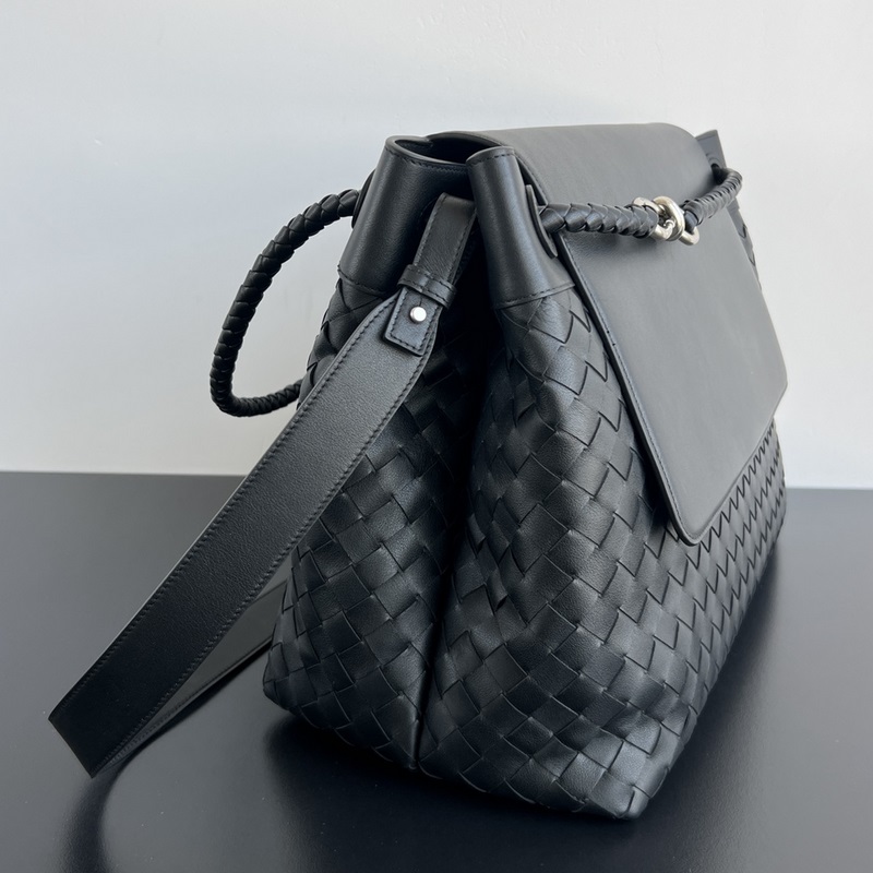 #BV 신상 남성용 Andiamo 손잡이 단숏 크로스백으로 사용 가능한 805969는 패션과 실용성을 겸비한 남성용 가방입니다. Intrecciato 직조 디자인의 상징적인 요소와 광택 있는 가죽의 조합이 독특한 시크한 스타일을 연출합니다. 소가죽의 미묘한 광택과 자연스러운 텍스처가 고급스러운 패션감을 더하며 플랩 디자인과 Knot 매듭 스트랩 단단한 전체 가죽 스트랩이 조합되어 개인적인 느낌과 다양한 착용 방법을 제공합니다. 크기에 관계없이 노트북을 수납할 수 있으며 일상 출퇴근 비즈니스 출장 또는 여행 등 다양한 상황에서 편리하게 사용할 수 있습니다. 크기: 43x32x20